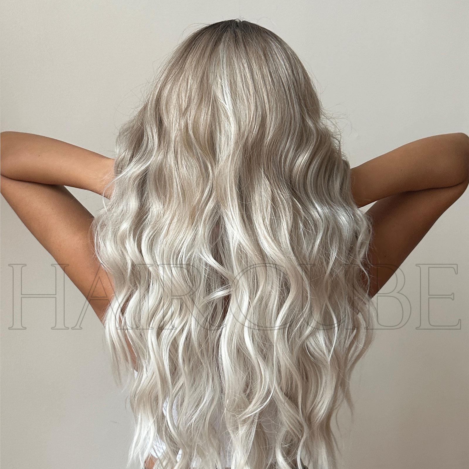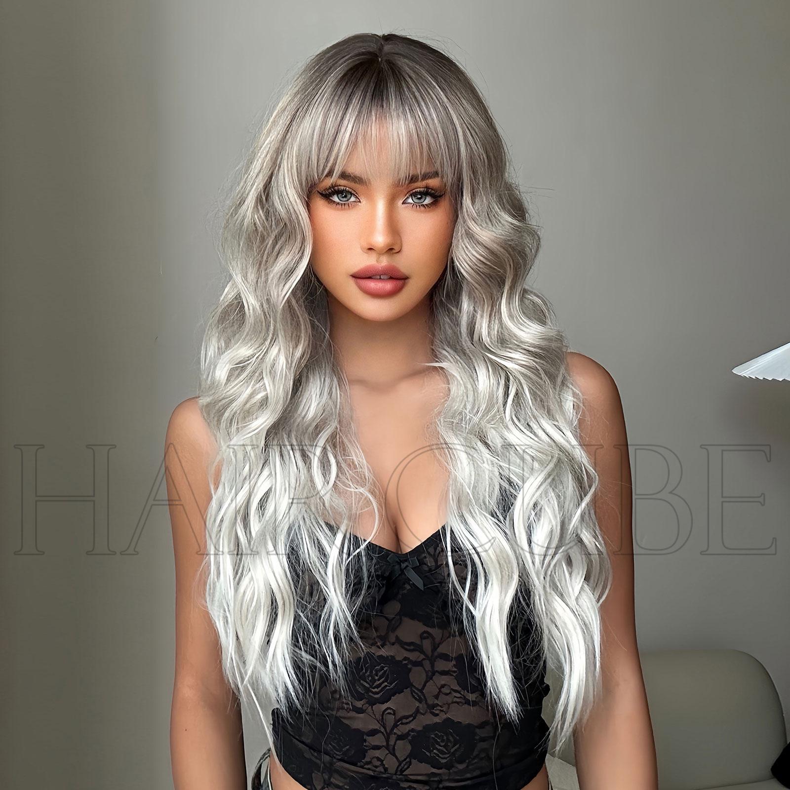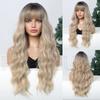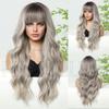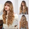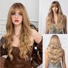 Novo Capacete de Peruca Marrom Gradiente Platina Franja Qi Onda Peruca de Cabelo Longo Cacheado Comércio Exterior em estoque cosplaywig