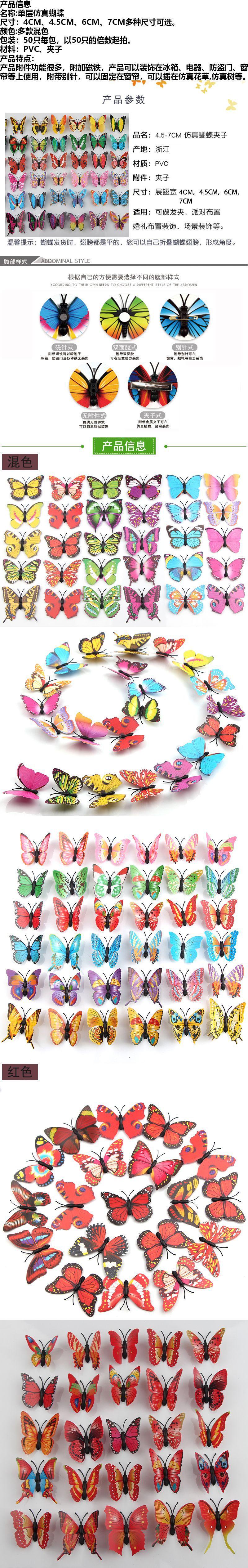 Compre Simulação de borboleta de PVC de camada única multicolorida, decoração criativa para jardinagem doméstica, fábrica de atacado de borboletas no atacado no Joom.pro