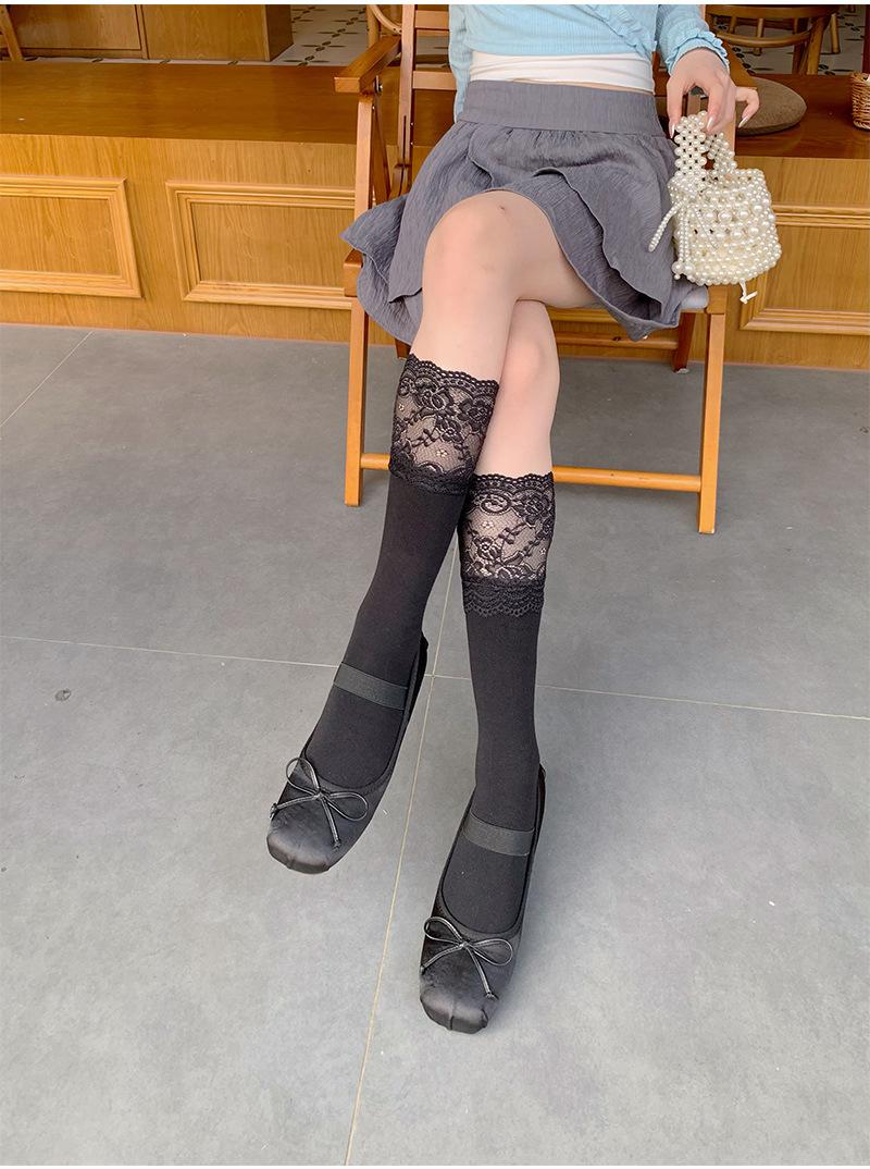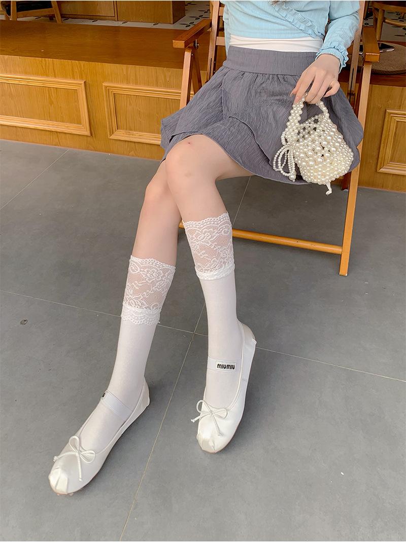 Meias de renda branca acima do joelho femininas estilo balé meias Ins Trendy Jk Lace Hare meias com botas longas finas