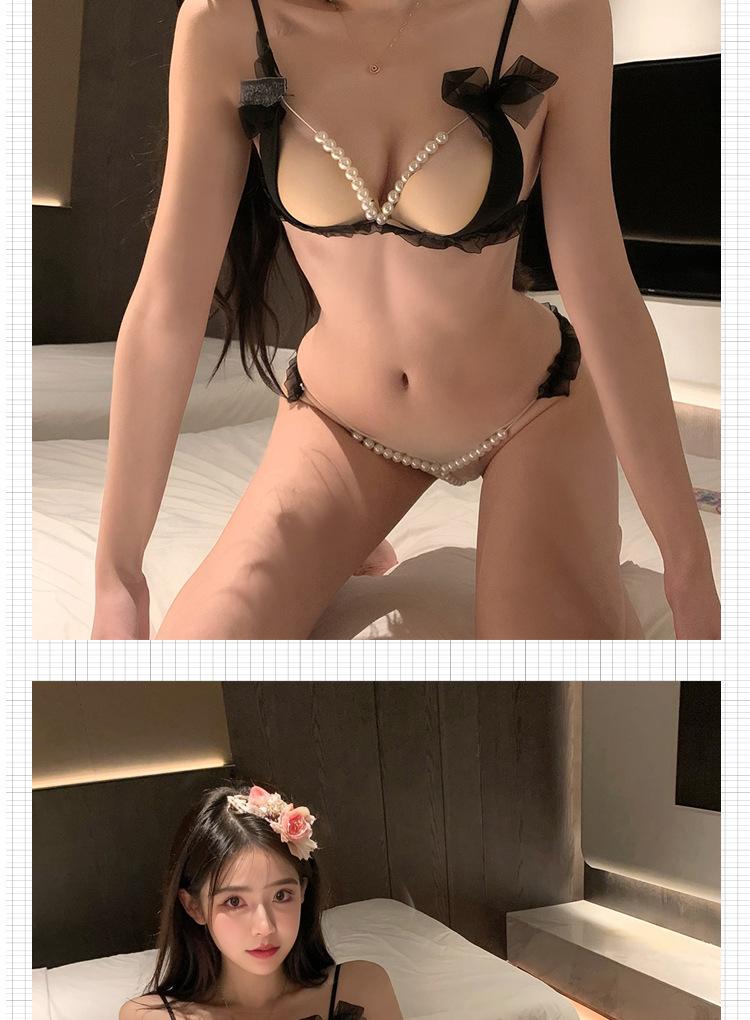 Sexy lingerie pure desire sexy three-point pearl massage uniform lace transparent temptation open file passion suit