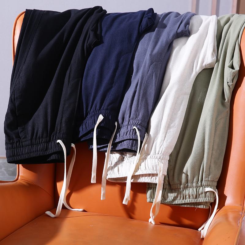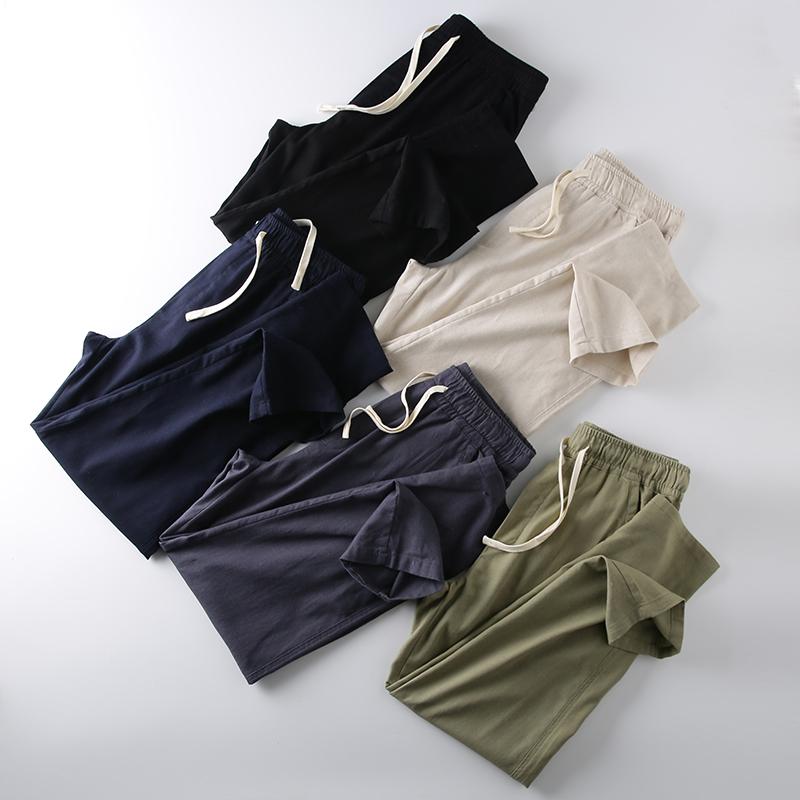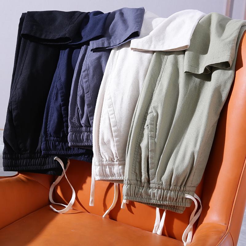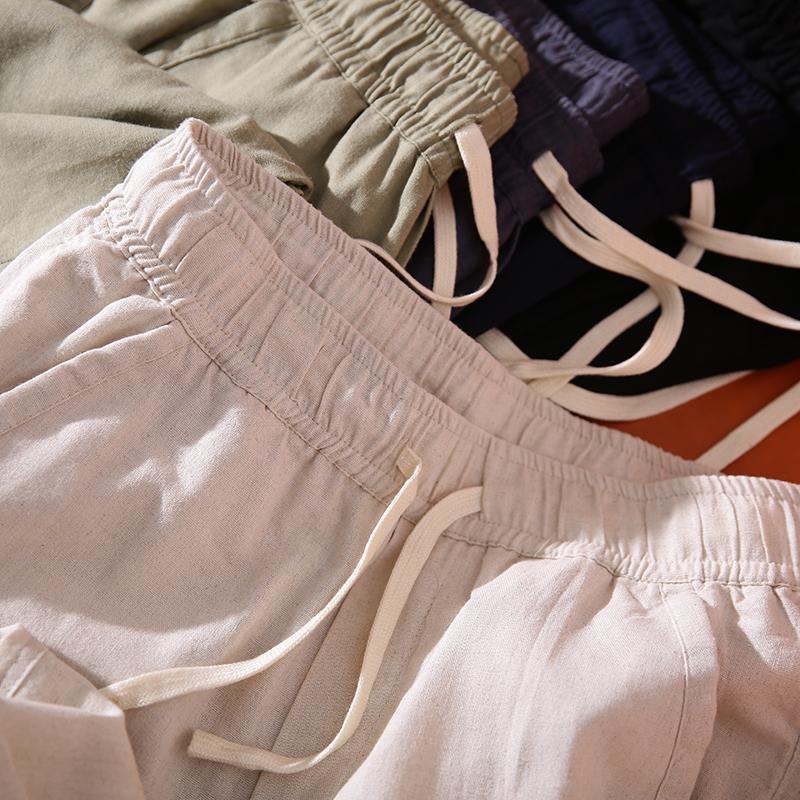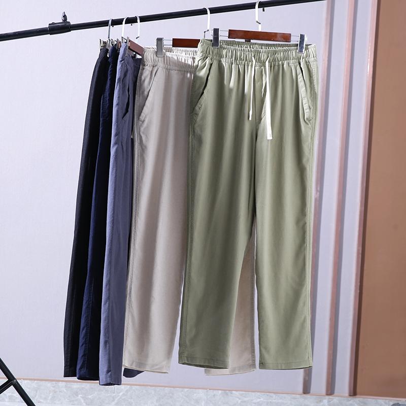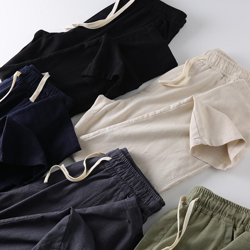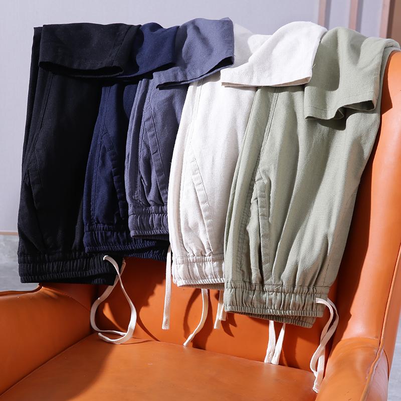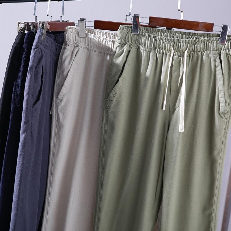 Estilo Verão Fresco Retrô 2025 Moda Verão Masculina Cintura Elástica Linho Respirável Casual Calças Compridas Tendência