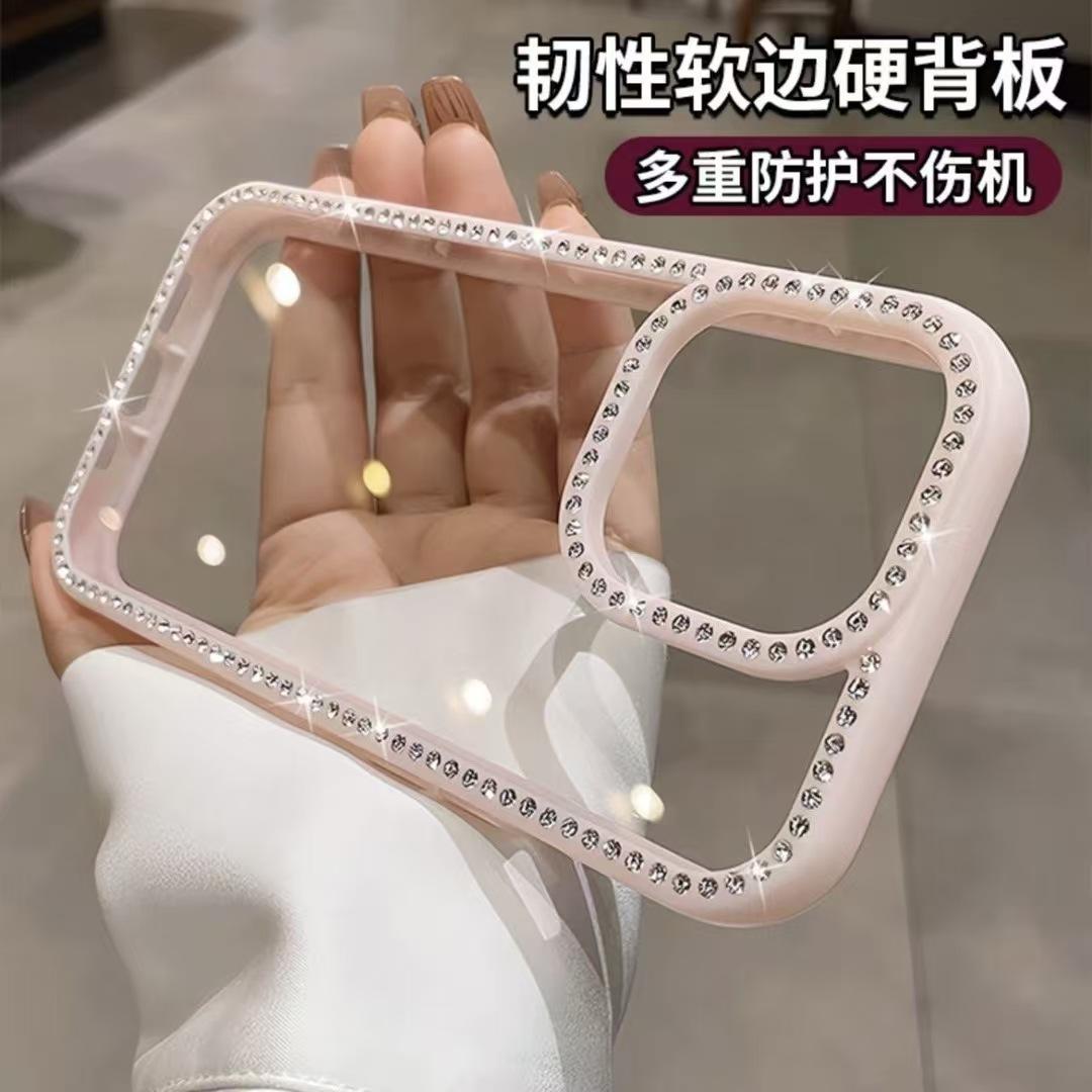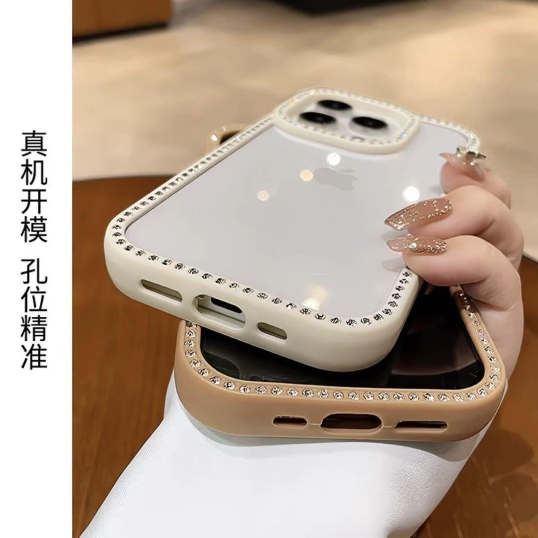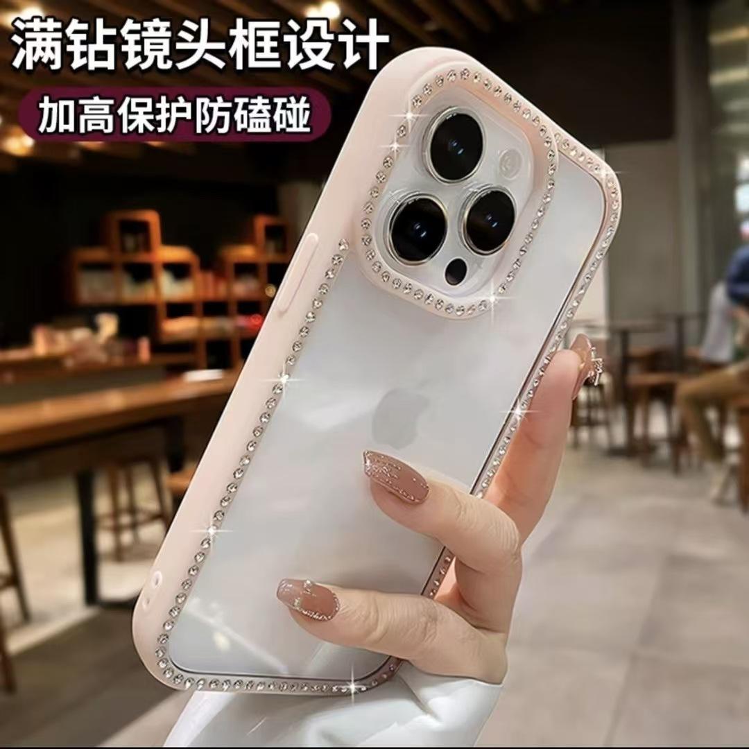 Para Apple 16ProMax Cor Doce Strass Capa de Celular iPhone15 14 Ranhura Transparente 13 Resistente a Quedas 12 Mulheres