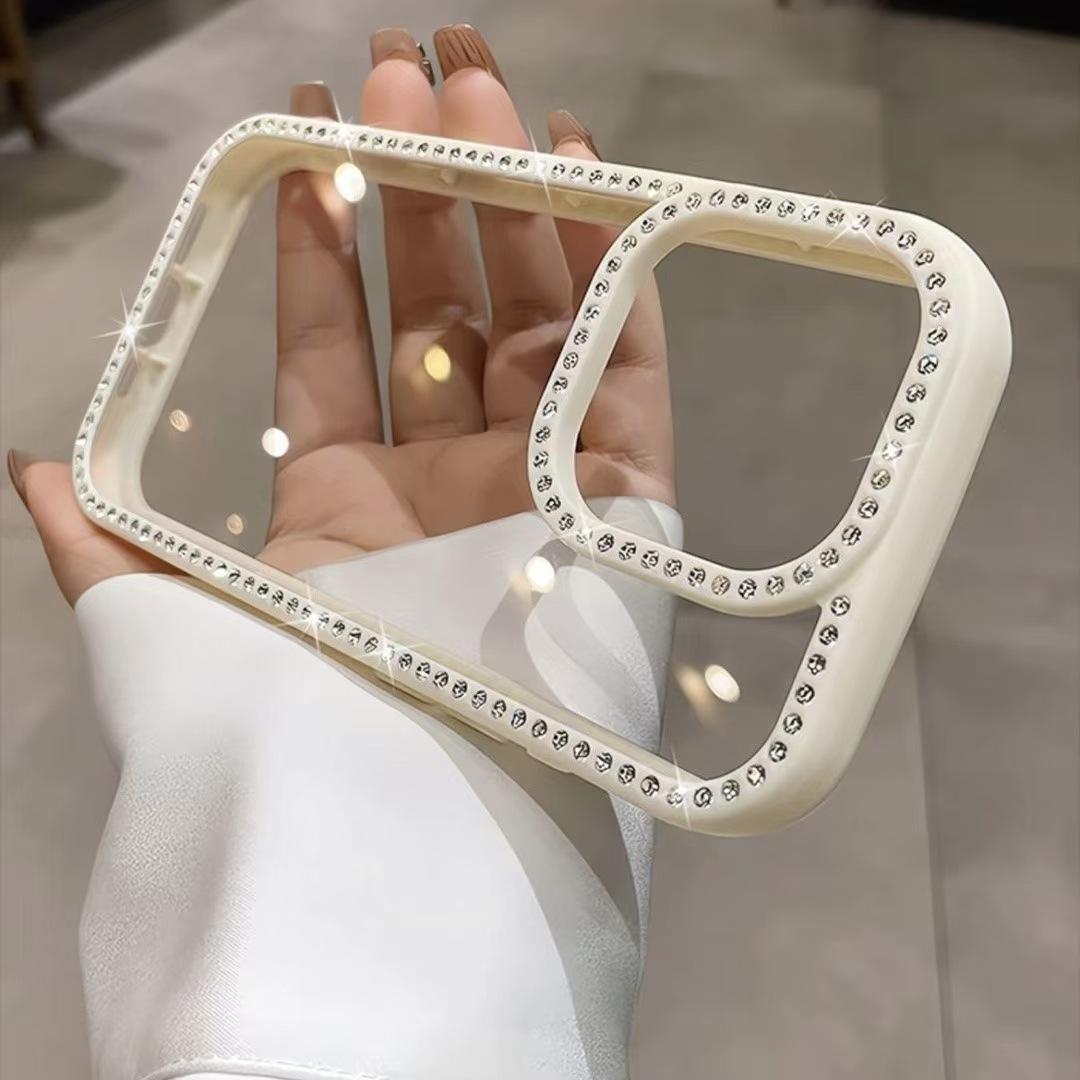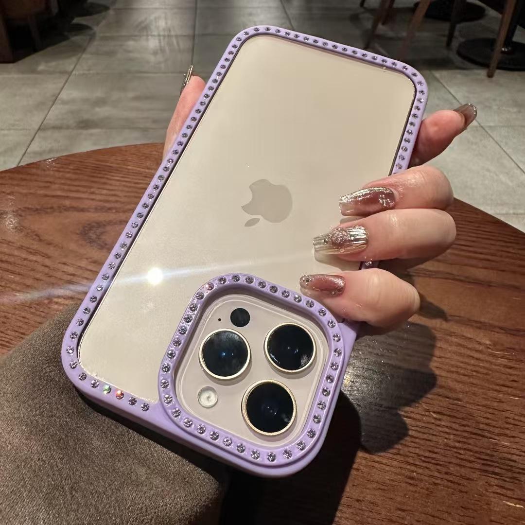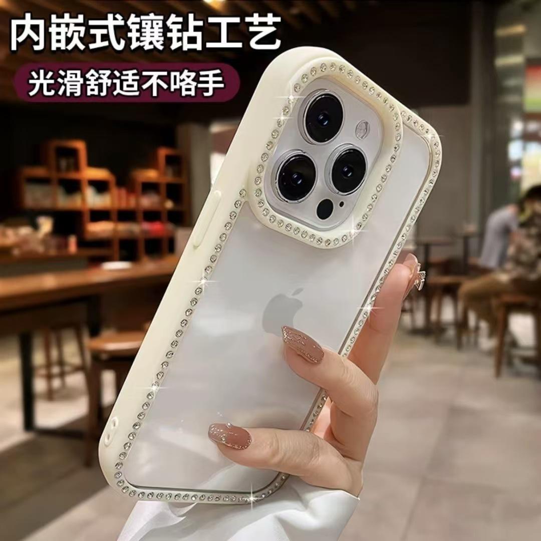 Para Apple 16ProMax Cor Doce Strass Capa de Celular iPhone15 14 Ranhura Transparente 13 Resistente a Quedas 12 Mulheres