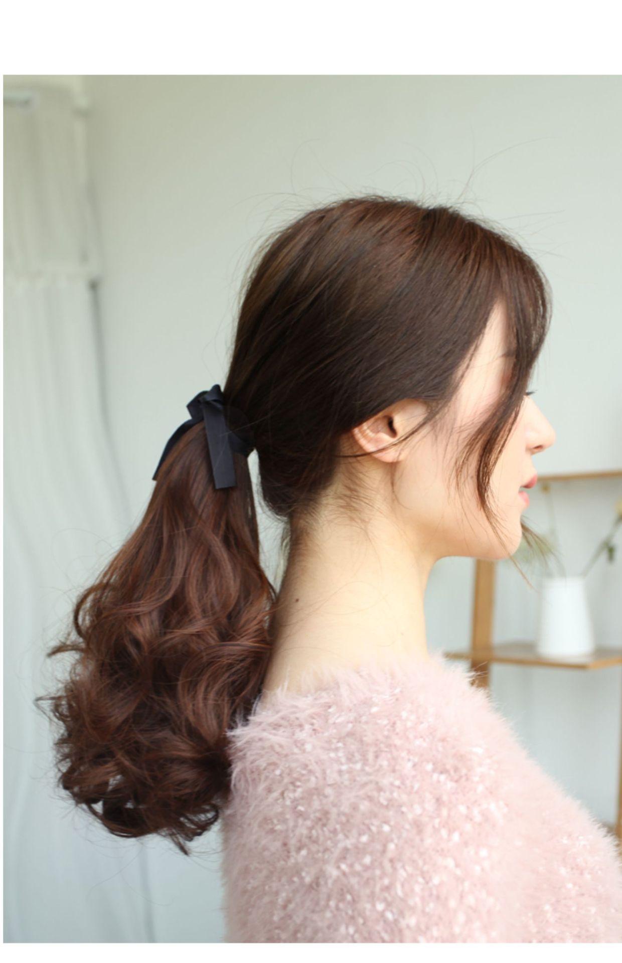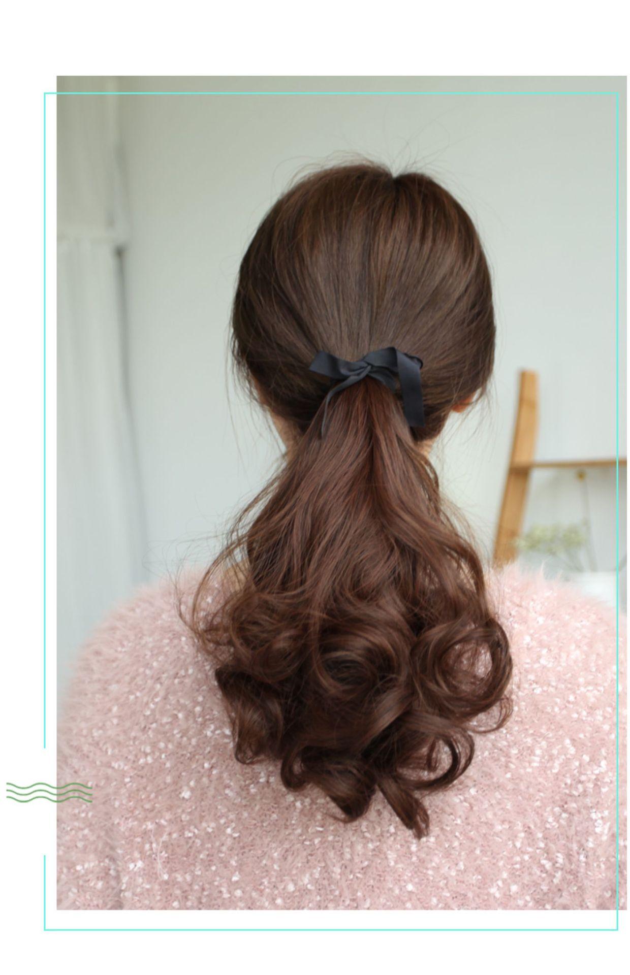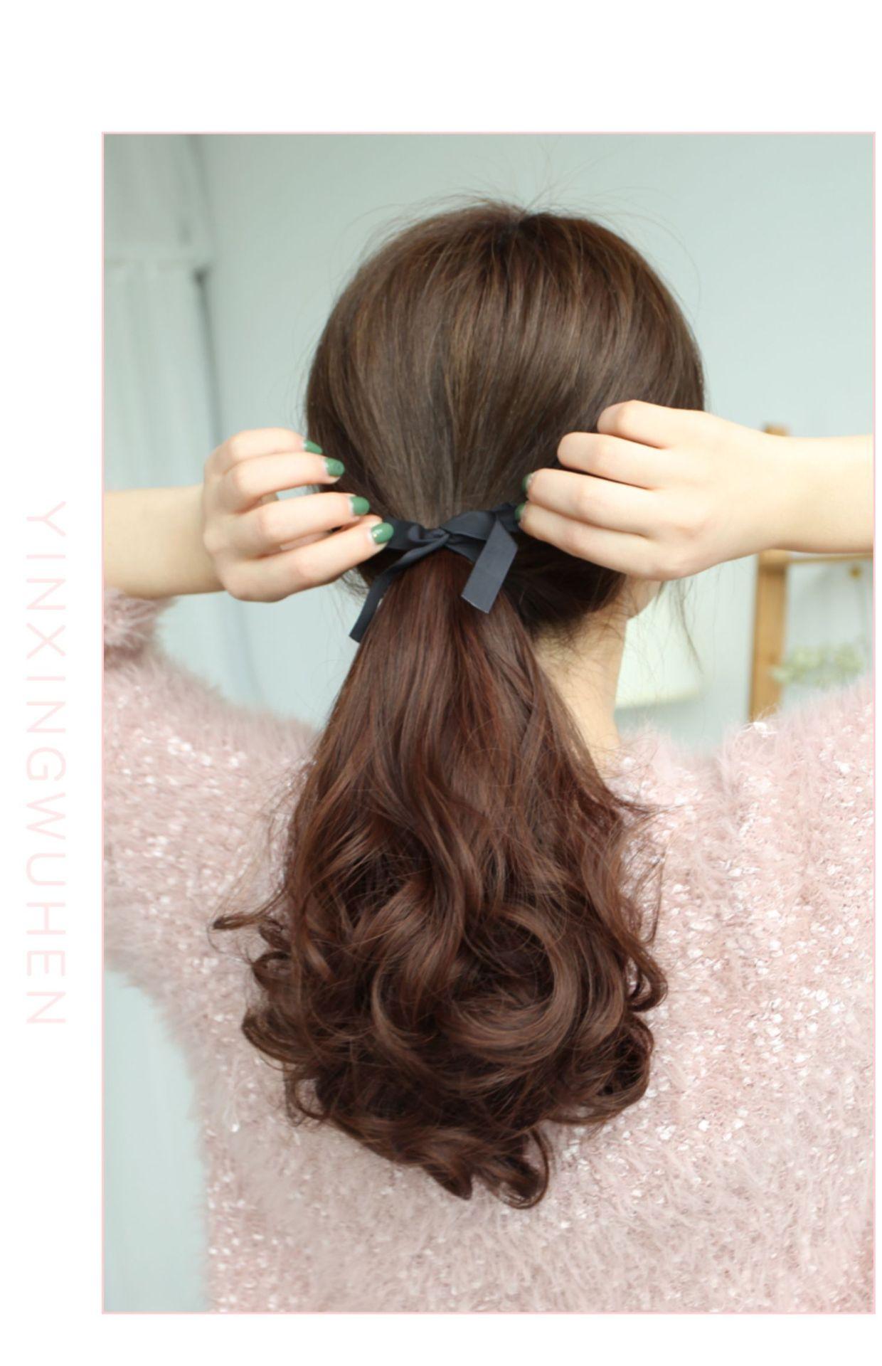 Peruca Rabo de Cavalo Feminino Cabelo Longo Cacheado com Tiras Cacho Pera Rabo de Cavalo Falso Onda Grande Realista Rabo de Cavalo Alto Peruca Trança