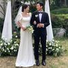 Vestido de Noiva Leve de um Ombro 2025 Novo Estilo Vestido Principal Noiva Inverno Alta Costura Estilo Francês Comprimento no Chão Fotografia de Viagem Vestido de Casamento