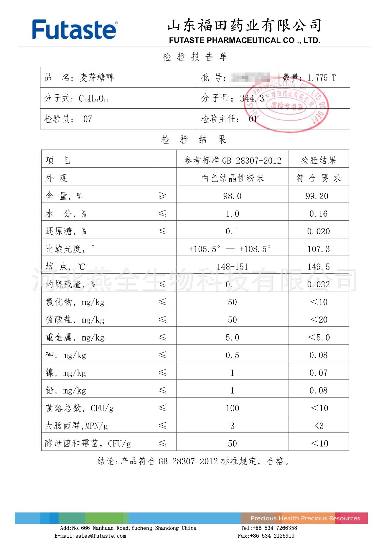 Como aditivo alimentar, o maltitol pode ser usado em bebidas geladas, doces, sucos, biscoitos, pães, picles e doces, e a dosagem pode ser determinada de acordo com as necessidades de produção.