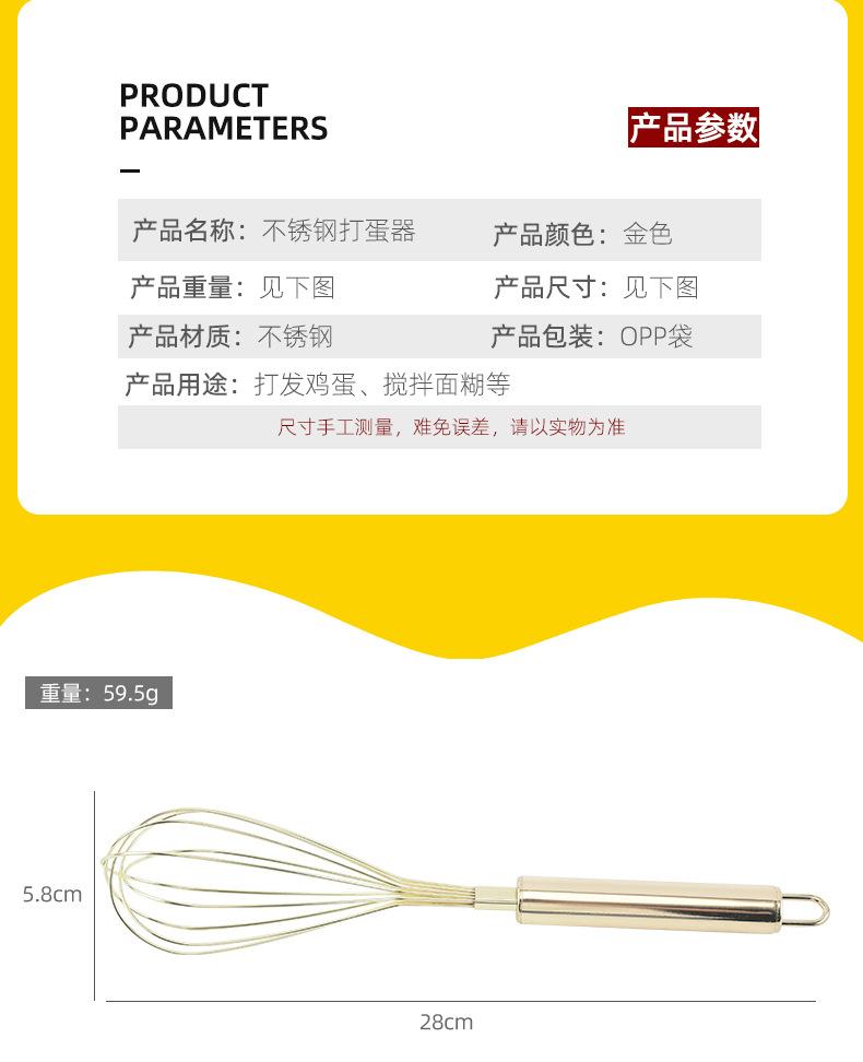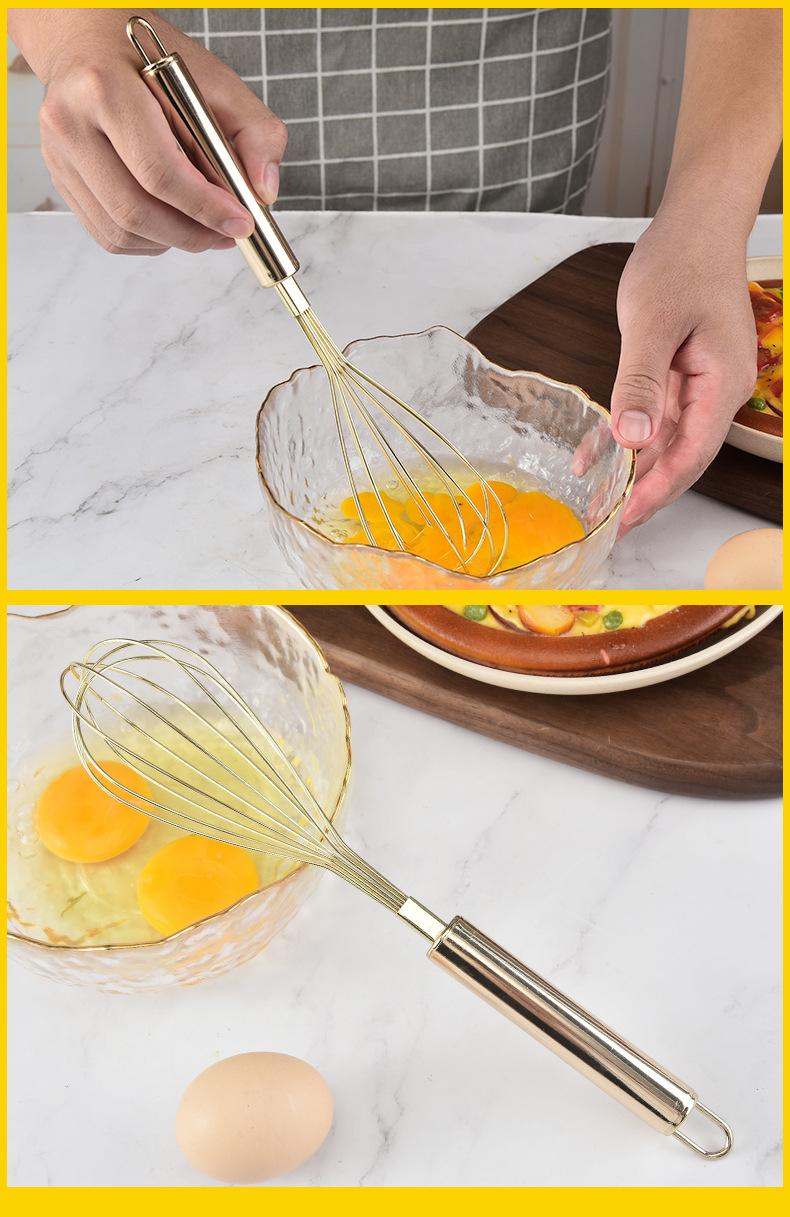 Batedor de ovos de aço inoxidável Batedor de ovos multifuncional dourado criativo prático dispositivo de espuma de creme manual fornecimento de fábrica