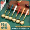 Atacado de fábrica colher cabo cerâmica imitação vermelho da internet padrão mármore colher de aço inoxidável hotel doméstico colher de comer colher de sopa