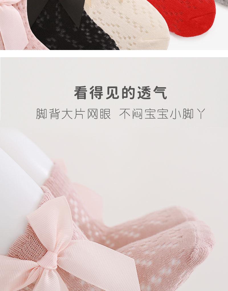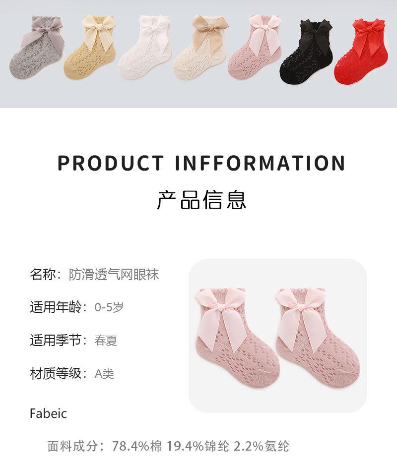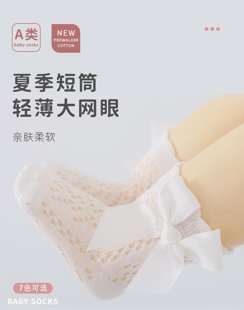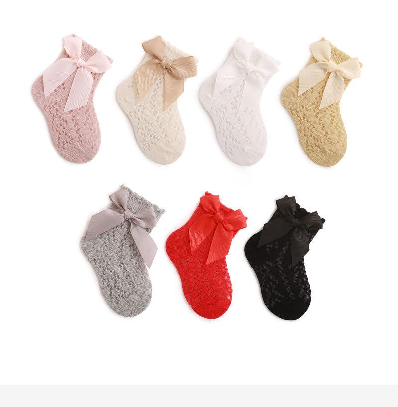 Meias de bebê verão malha fina meias de algodão para bebê laço fofo solto respirável meias de cano médio para meninas atacado