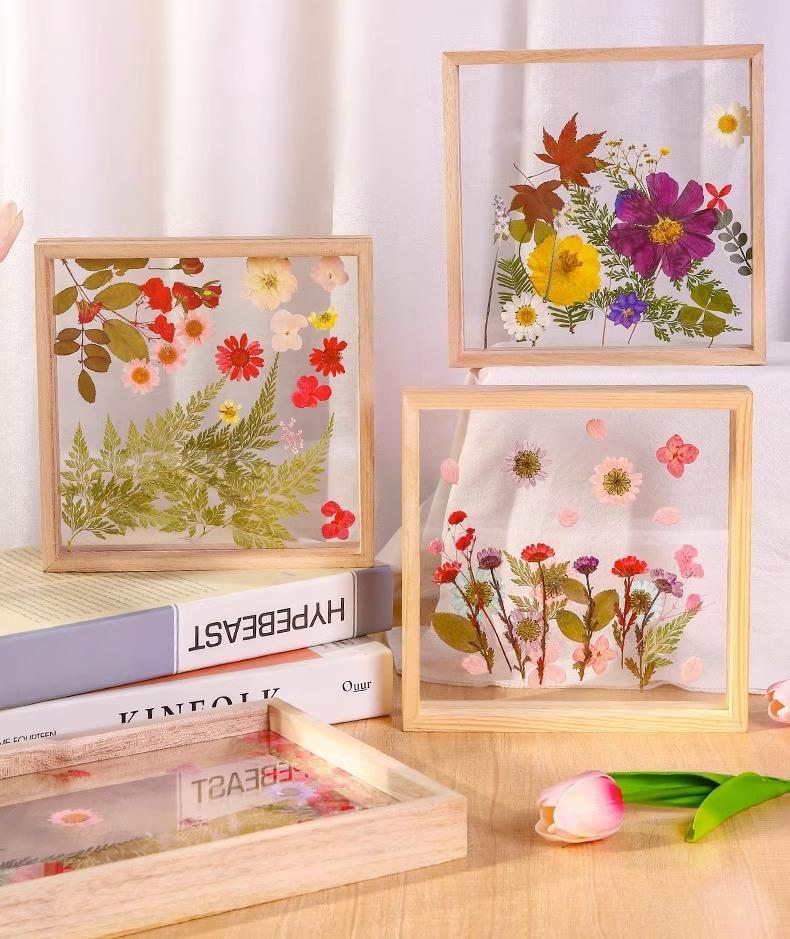 Porta-Retrato Transparente DIY Flor Seca Planta Espécime Moldura de Foto Madeira Maciça Acrílico Moldura Flor Eterna Feita à Mão Moldura de Arte