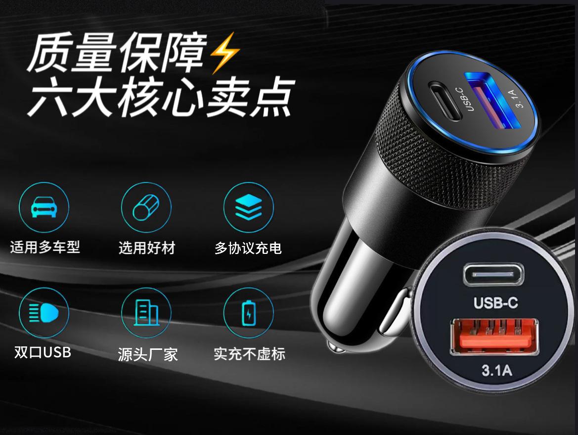 Carregador de carro com display digital carregamento super rápido detecção de voltagem USB QC3.0 com fio carro PD uma geração