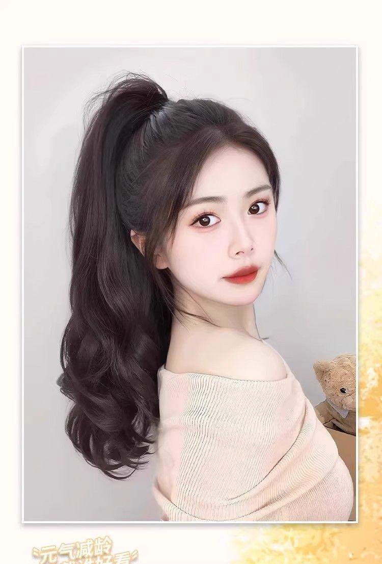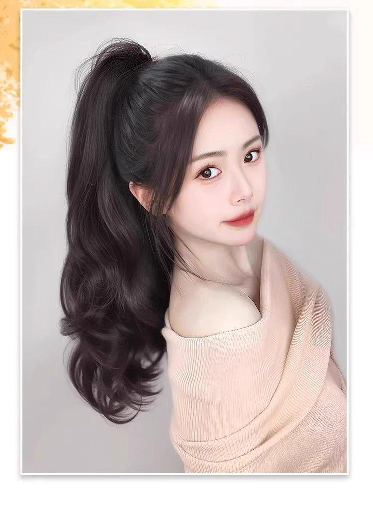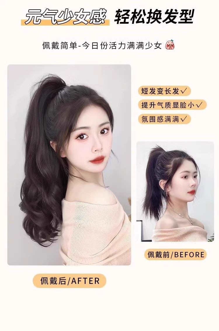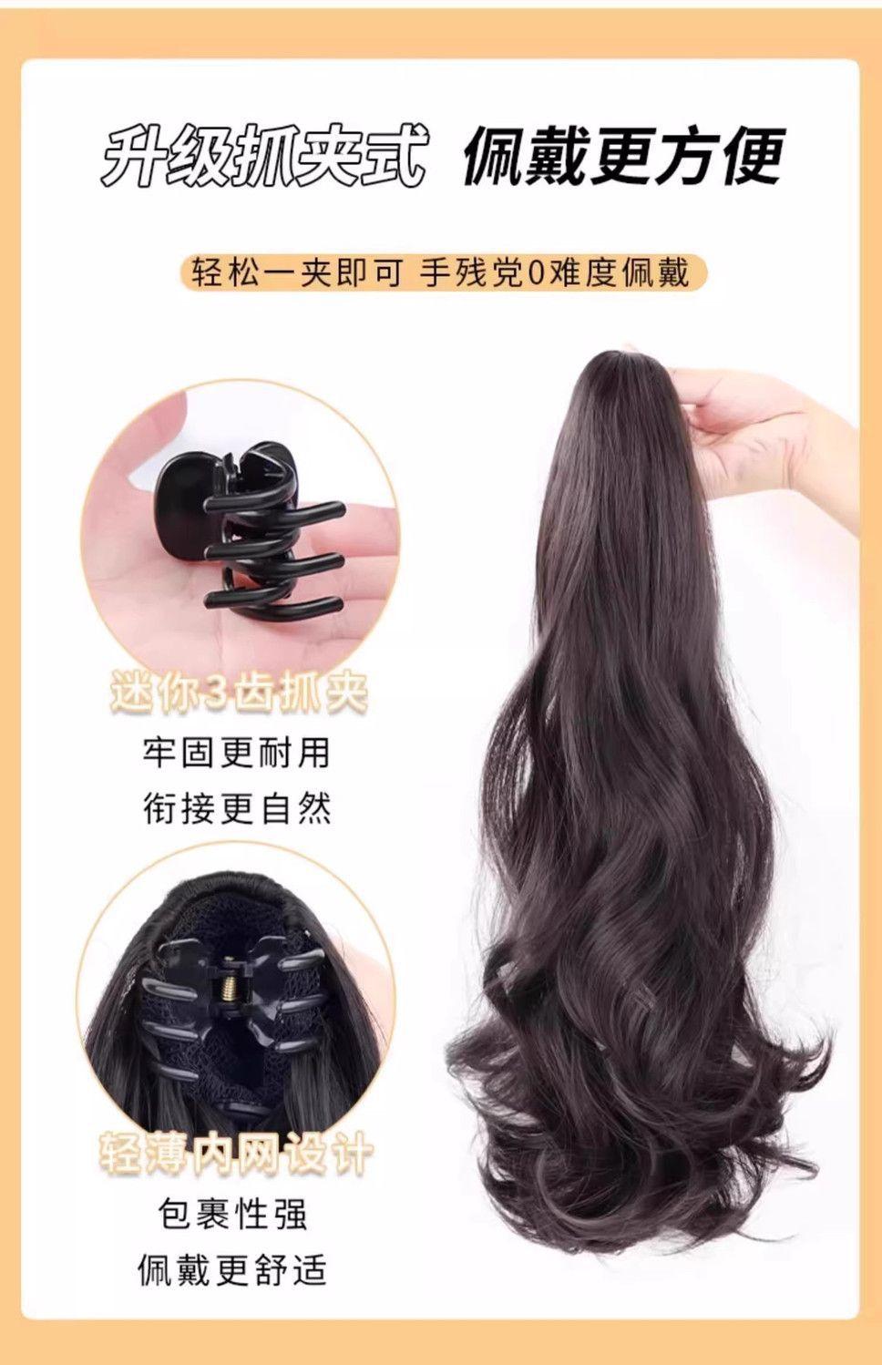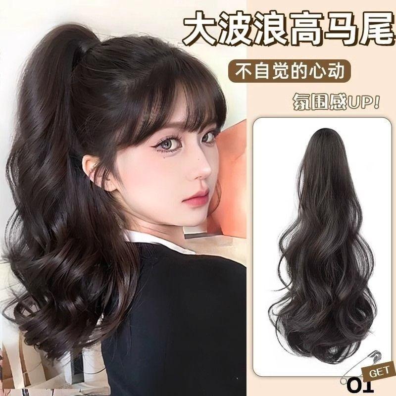Rabo de cavalo com grampo, peruca de cabelo cacheado feminino, onda grande, cabelo comprido, trança, simulação, fofo, rabo de cavalo alto, trança, atacado de fábrica