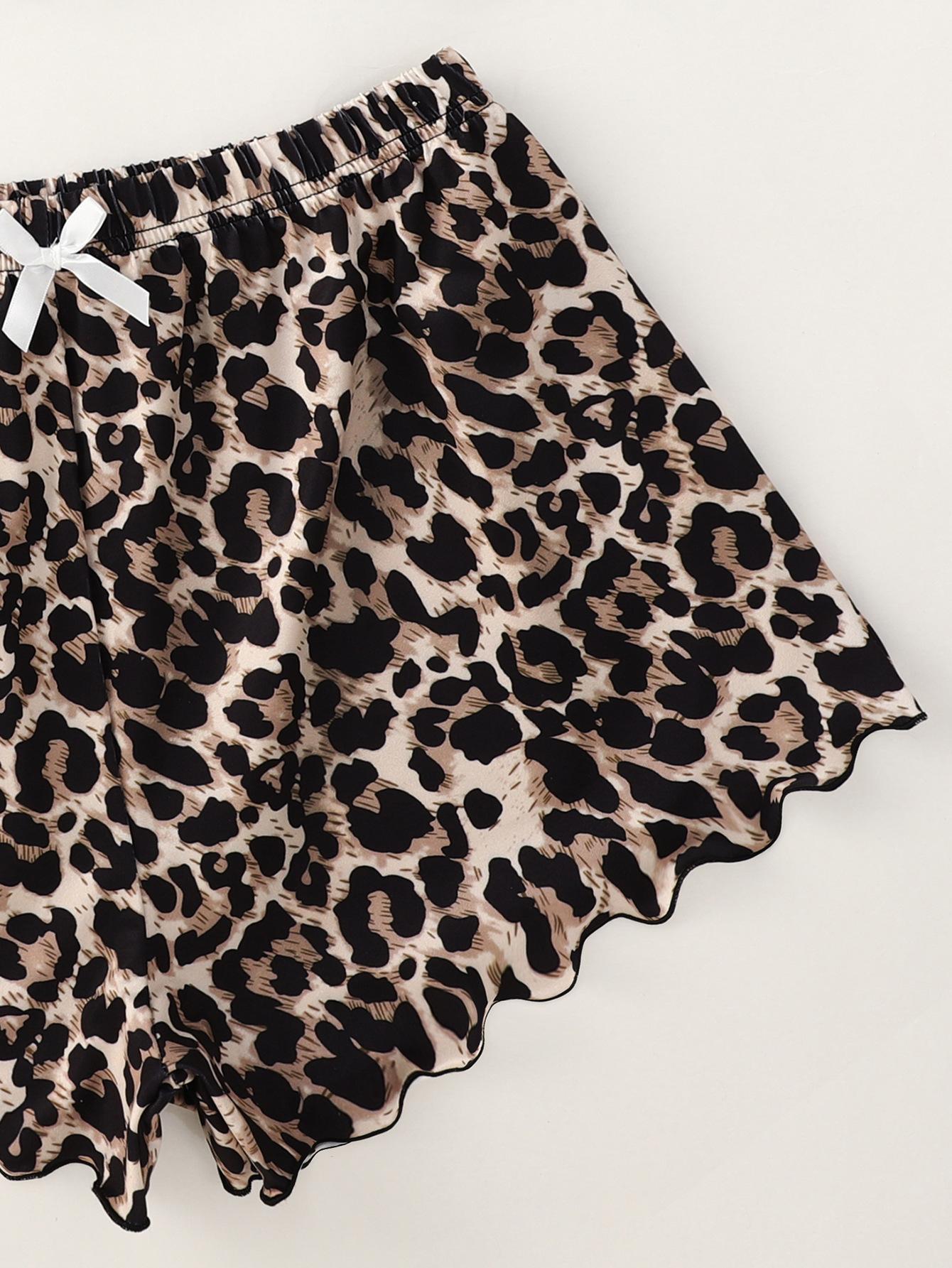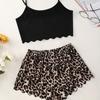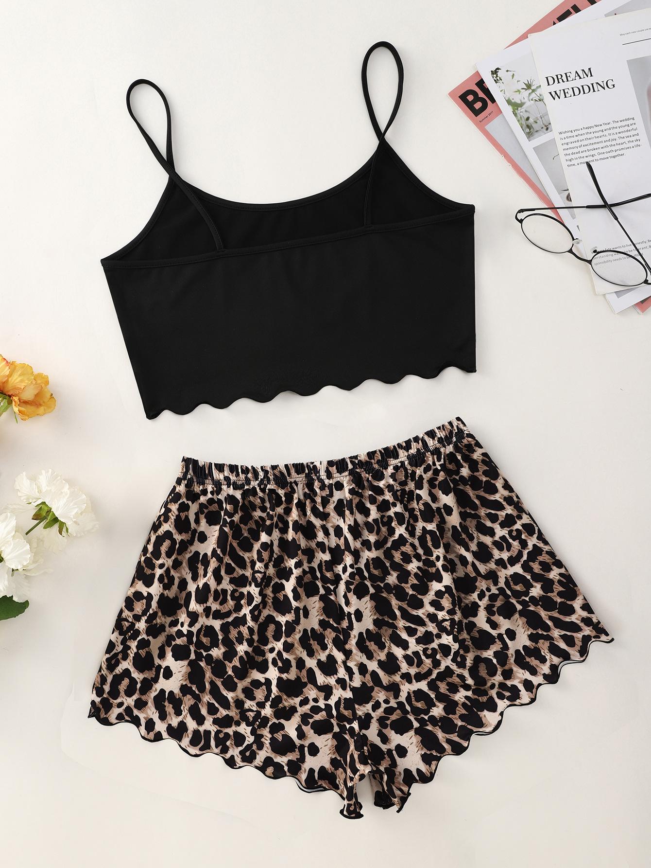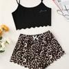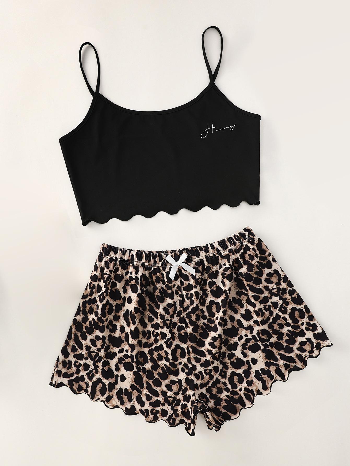 Novo Top de Alça Estampa Mel de Alfabeto e Shorts Estampa Onça Roupa de Casa TL9618