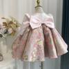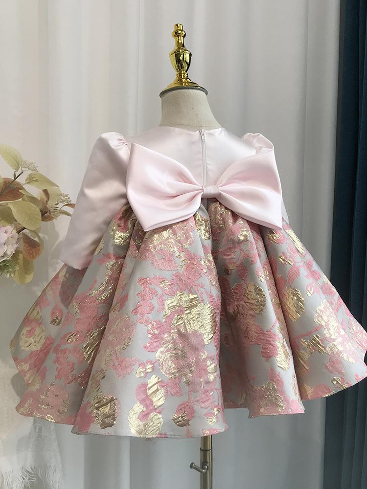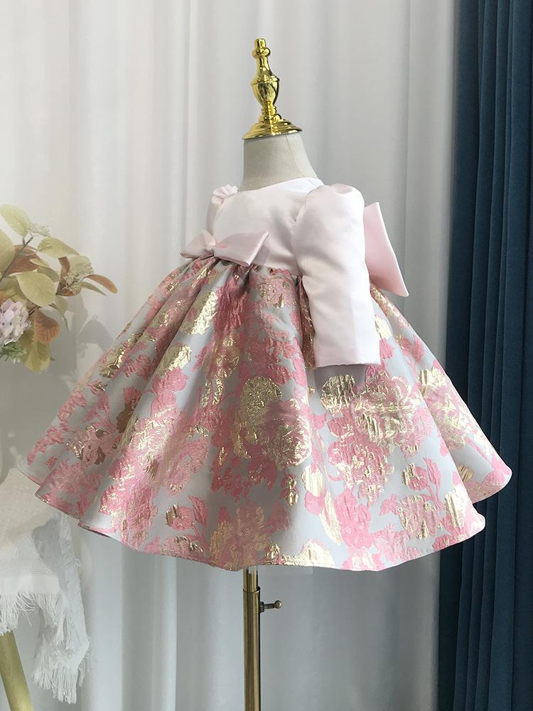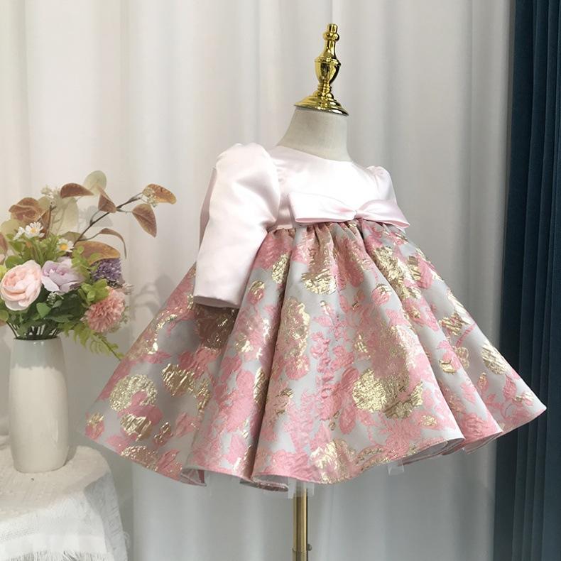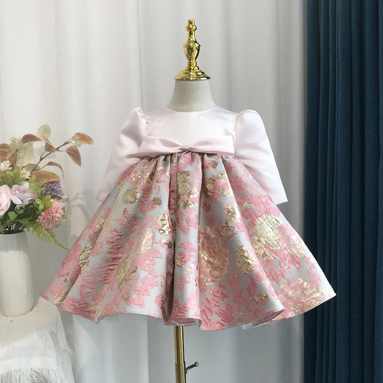 Vestido de Primeiro Aniversário do Bebê para Meninas, Vestido de Princesa de Cetim Estampado Elegante de Alta Qualidade, Vestido Tutu Estilo Coreano, Manga Longa para Outono