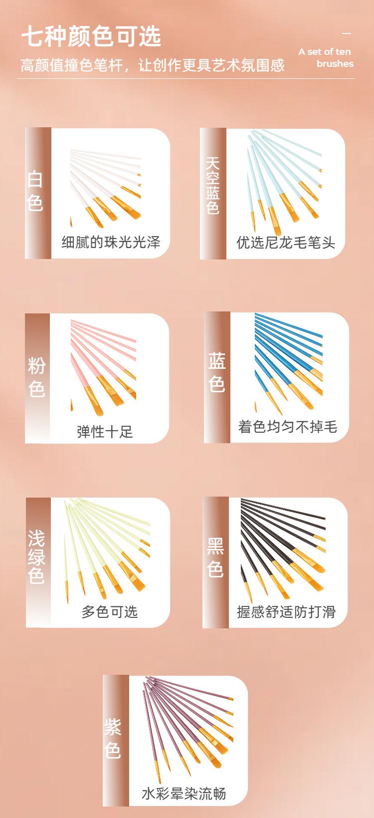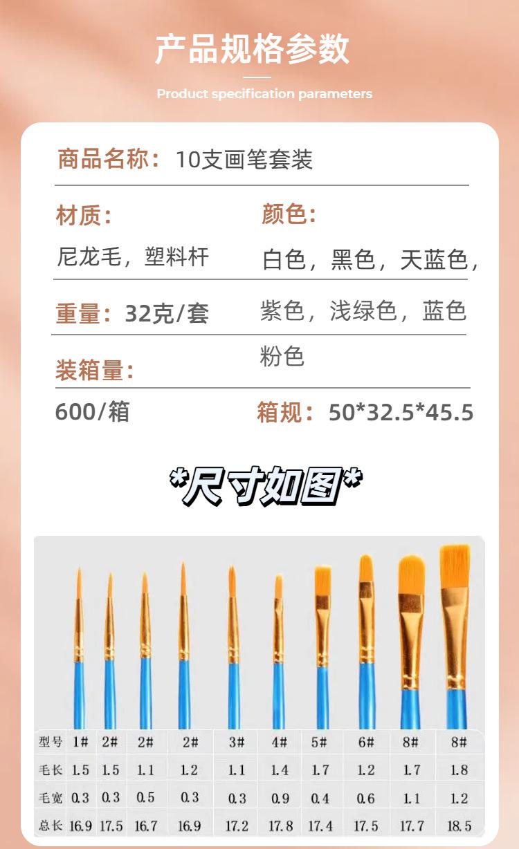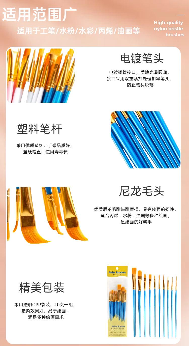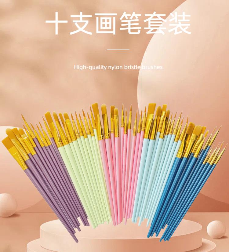 Amazon transfronteiriça 10 pincéis de lã de nylon perolada para pintura artística, aquarela, guache, óleo