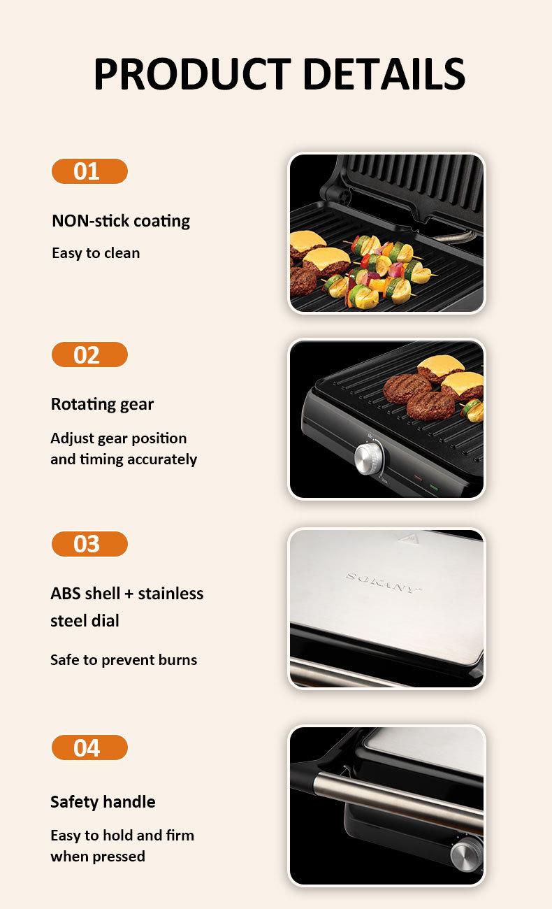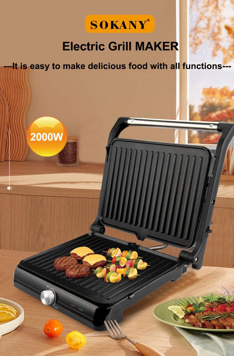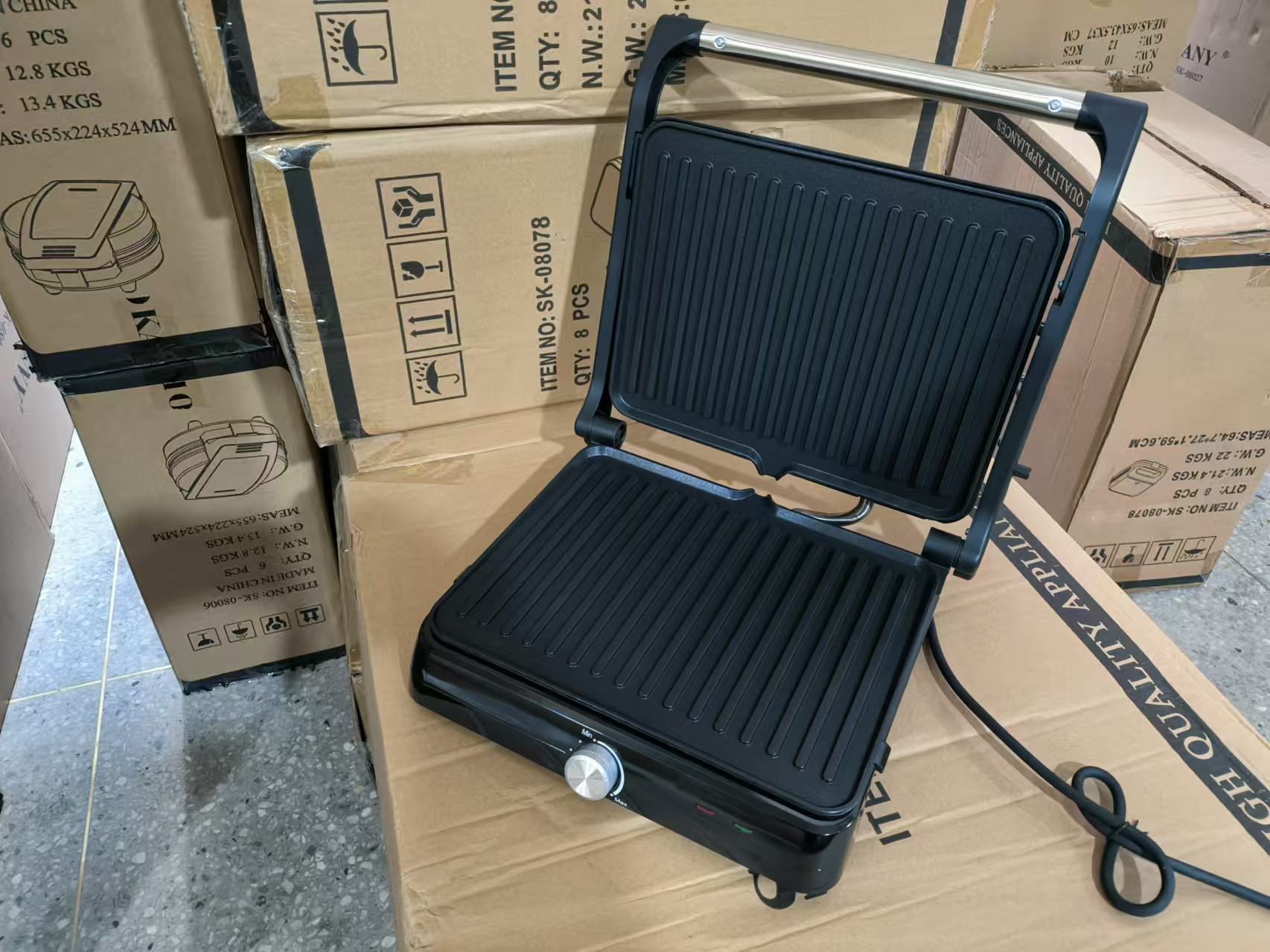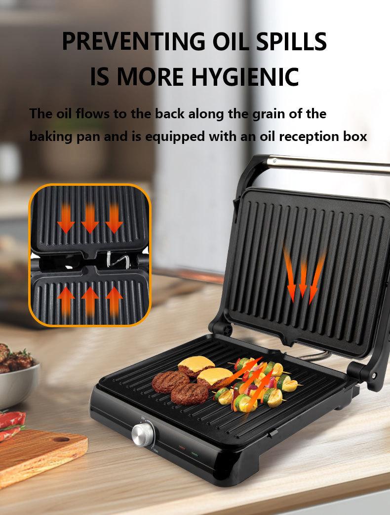 Máquina de panini doméstica transfronteiriça, máquina de sanduíche, máquina de café da manhã, máquina de churrasco, máquina de bife
