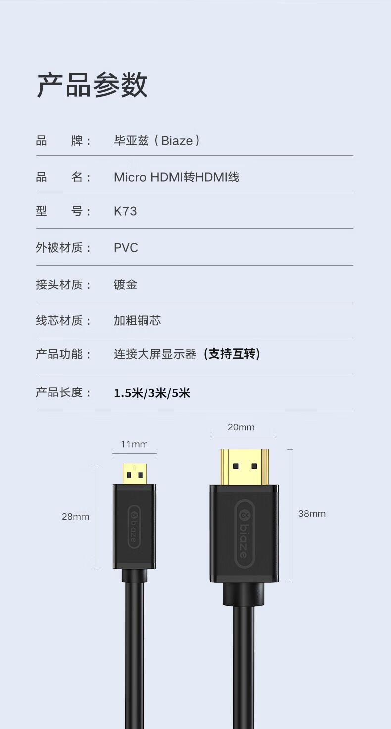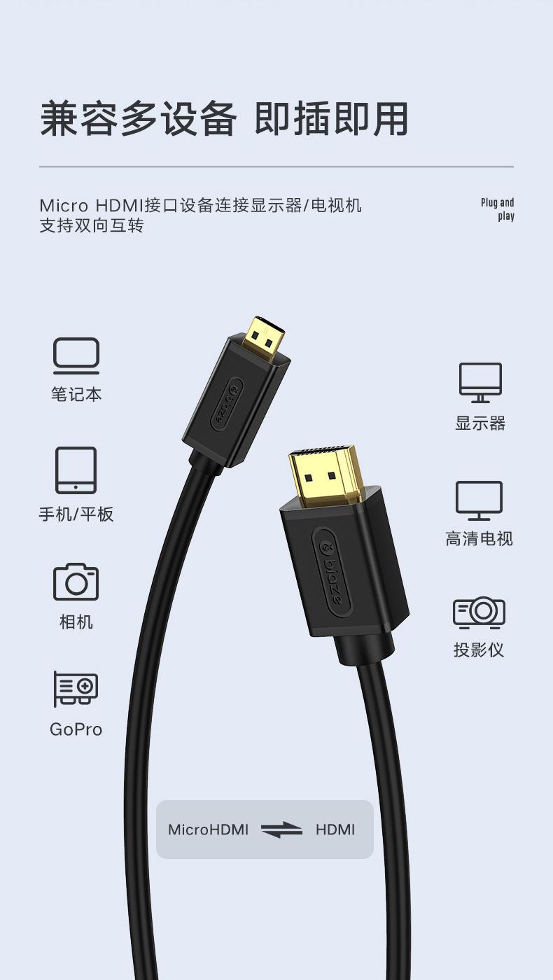 Compre Cabo Biaz Micro HDMI para HDMI 4K60Hz Adaptador Micro HDMI Cabo de Conversão no atacado no Joom.pro