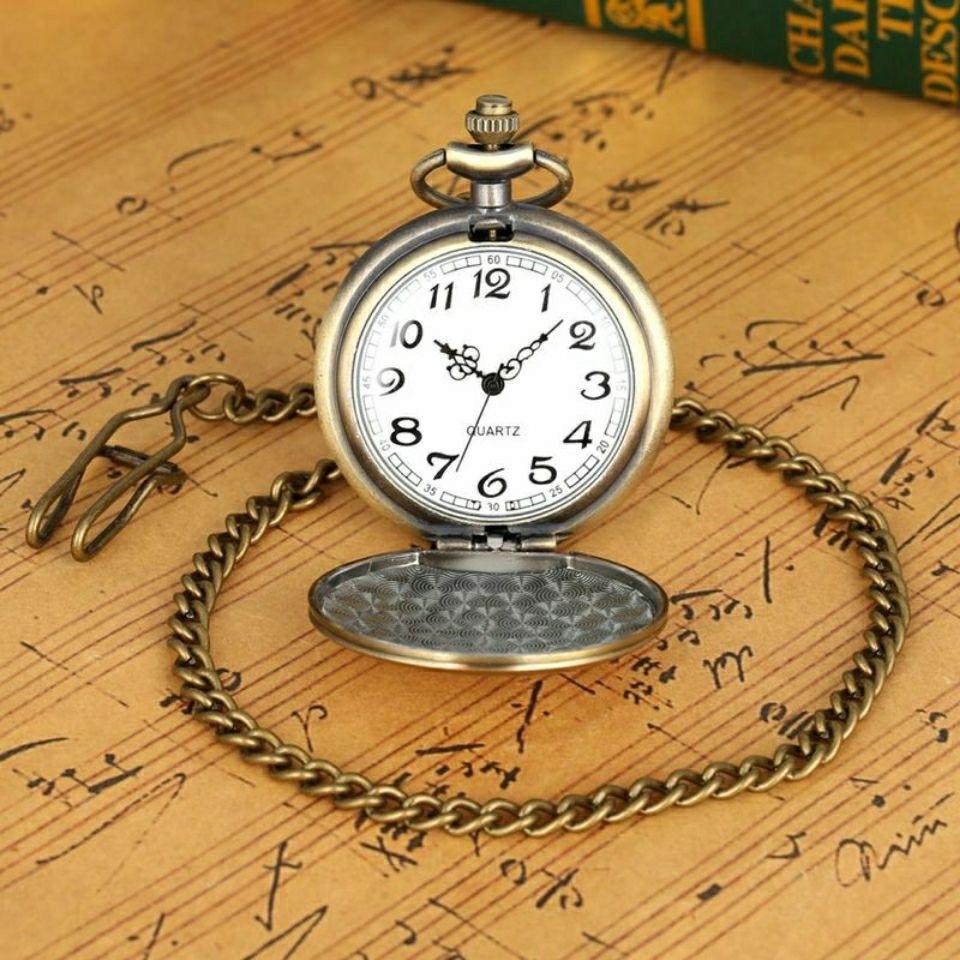 Relógio de bolso retrô Flip Bronze Nostalgic Classic Necklace Watch Memorial Gift Pingente Quartzo Relógio pendurado Fabricantes de comércio exterior