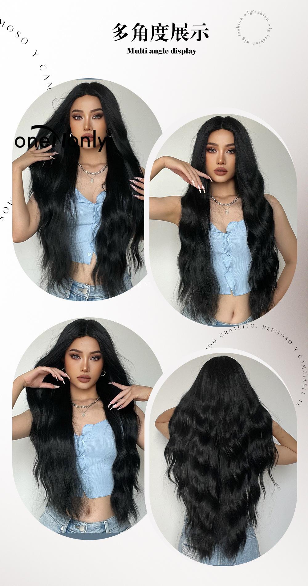 Peruca feminina cabelo longo cacheado Branco Preto cabelo longo cacheado peruca de fibra química artificial temperamento natural cobertura de cabeça inteira atacado