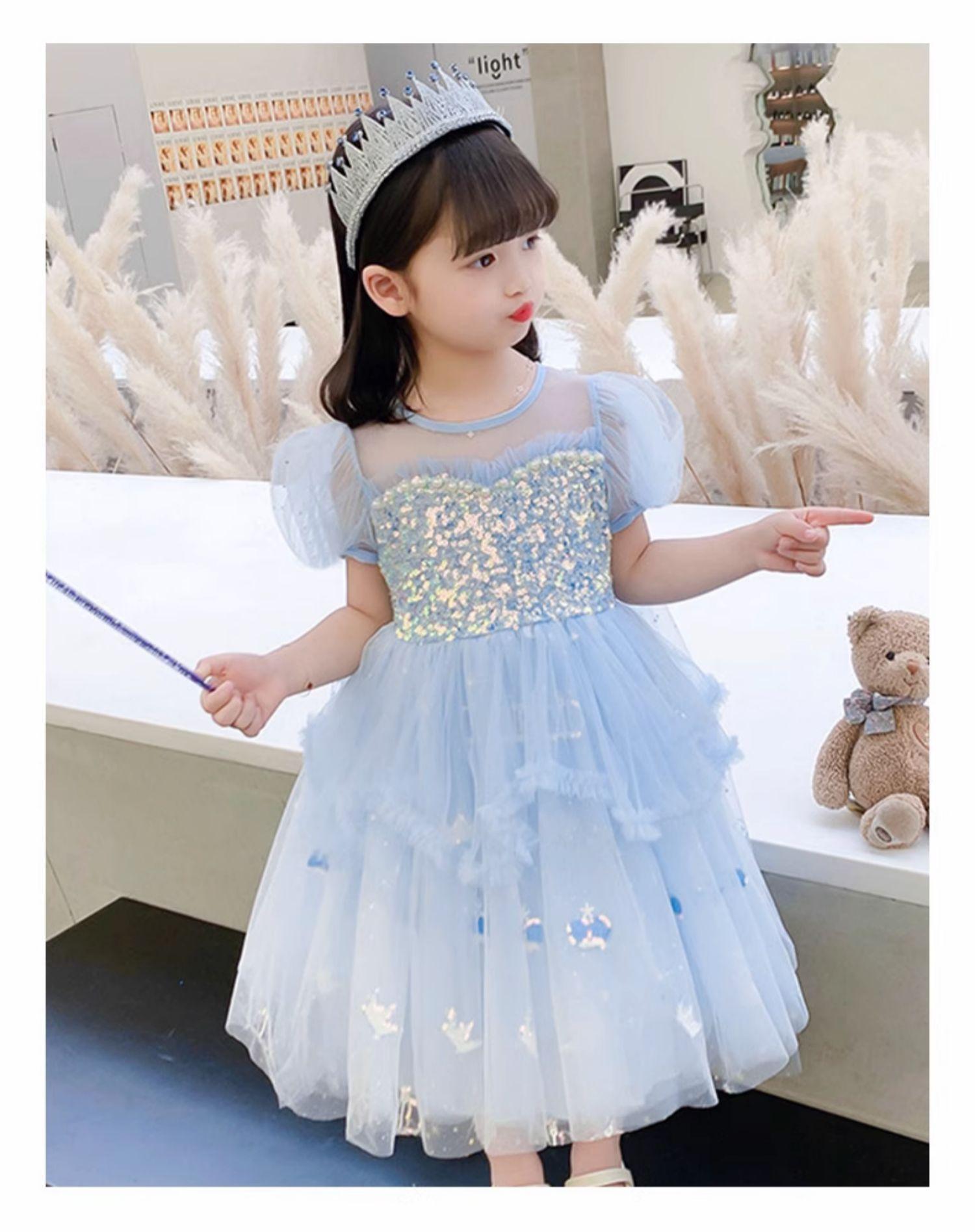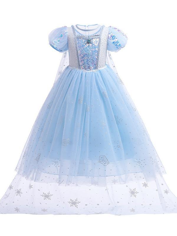 Vestido Congelado da Princesa Aisha Vestido da Princesa Aisha Meninas Vestido Cosplay da ELSA Manga Curta Puff Vestido de Princesa