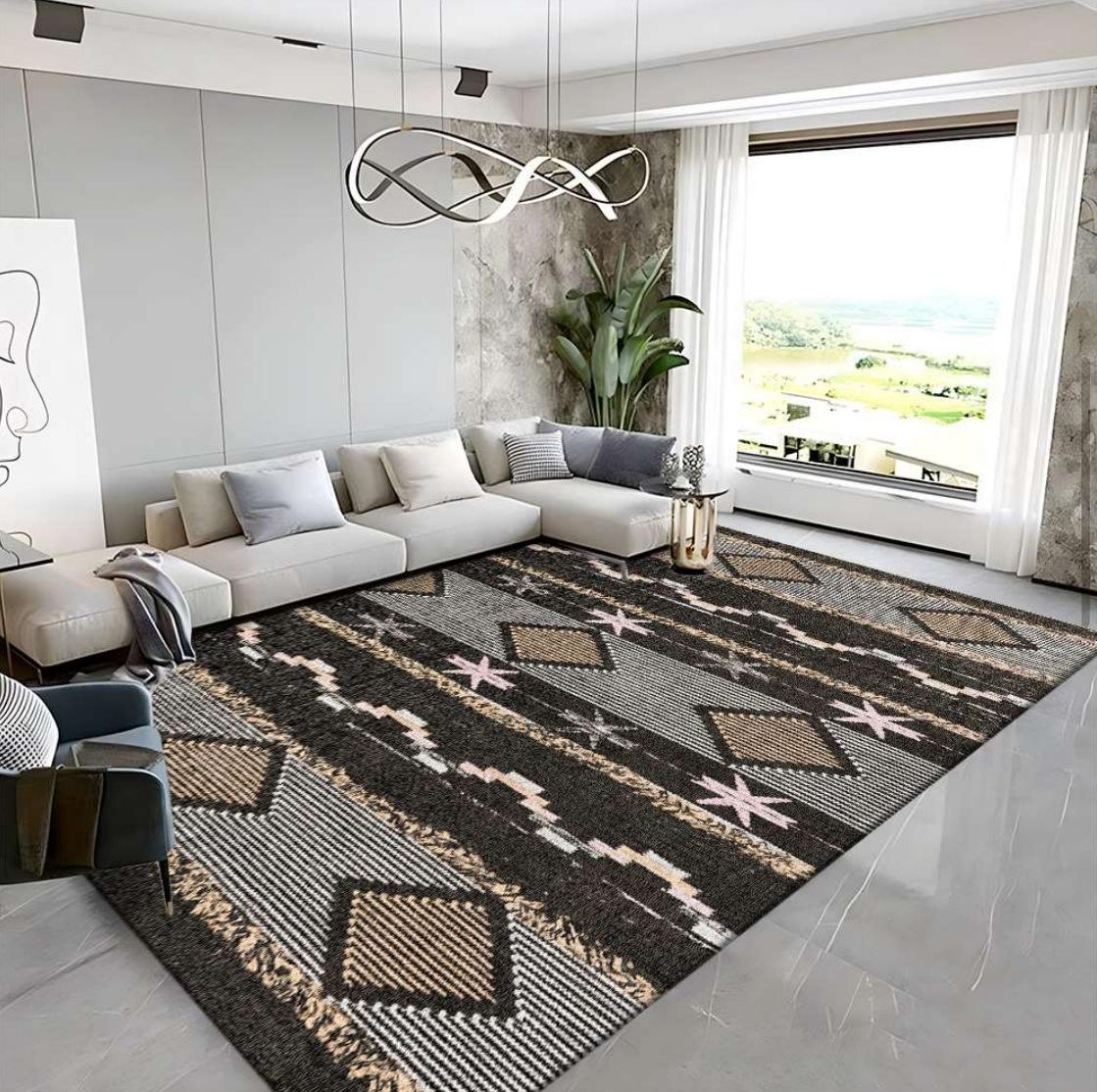 Tapete de Sala de Estar de Veludo Cristal Transfronteiriço, Tapete de Chão, Resistente a Manchas, Fácil de Cuidar, Cobertor de Sofá Espesso, Estampa de Cores Vivas, Silencioso