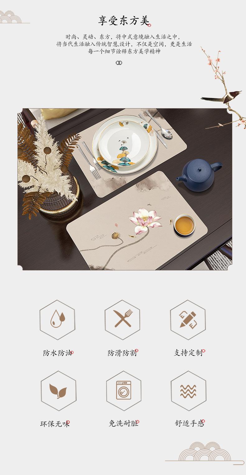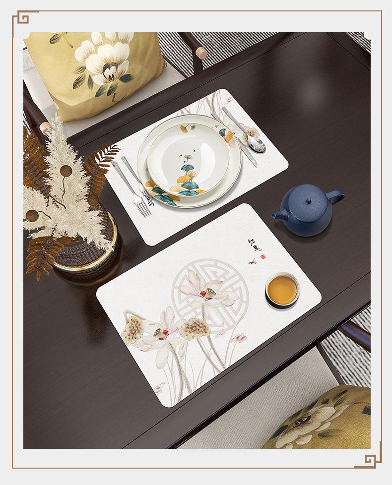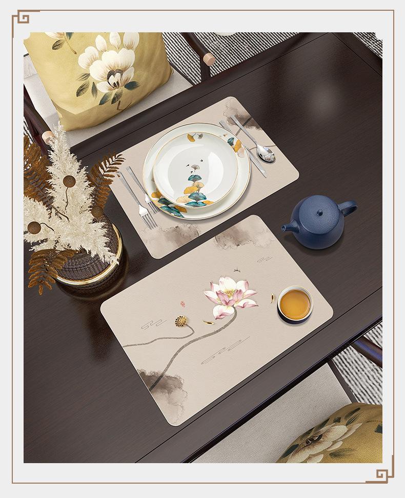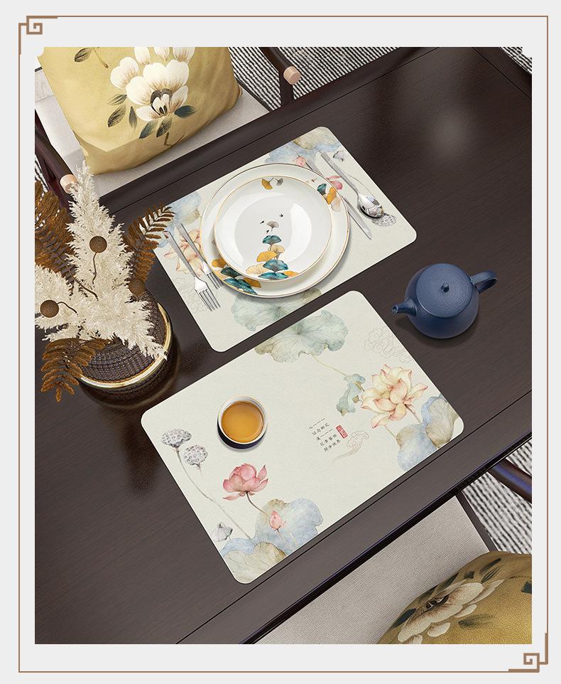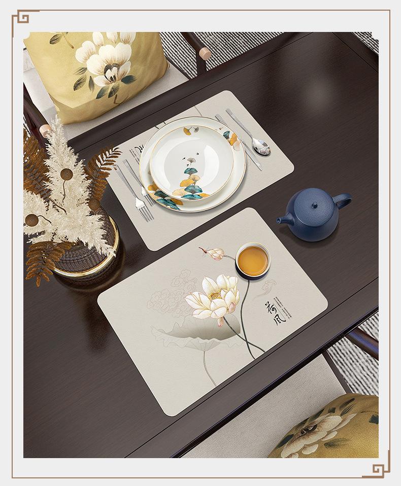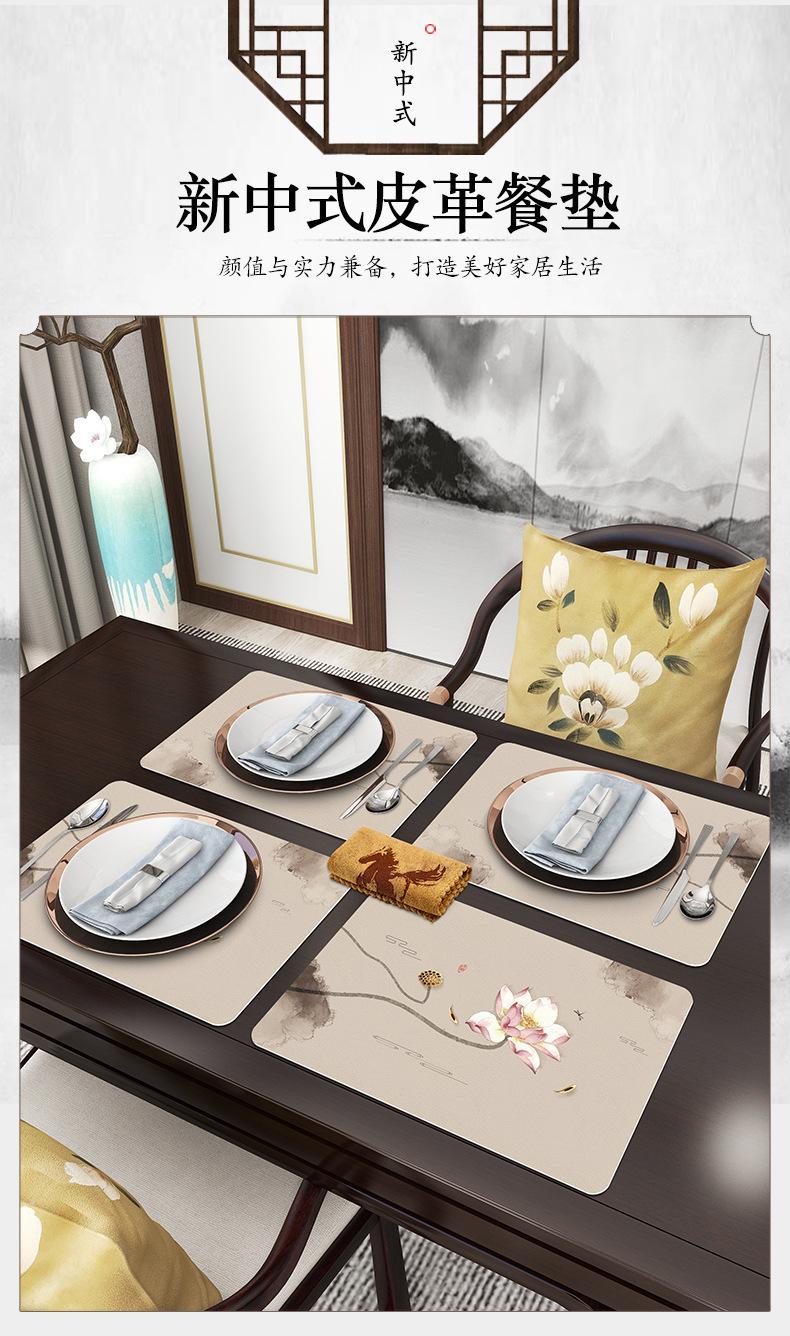 Placemat de couro novo chinês à prova d'água à prova de óleo antiderrapante placemat isolamento térmico anti-escaldante placemat ocidental hotel atacado talheres tapete