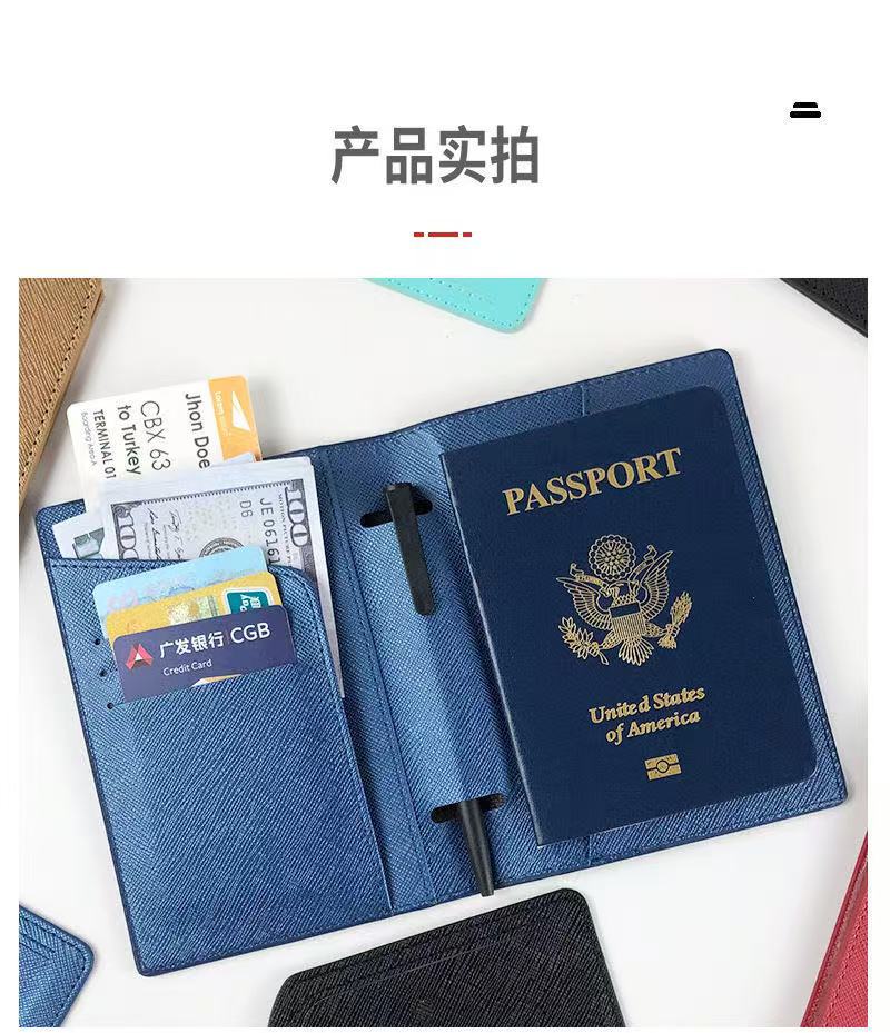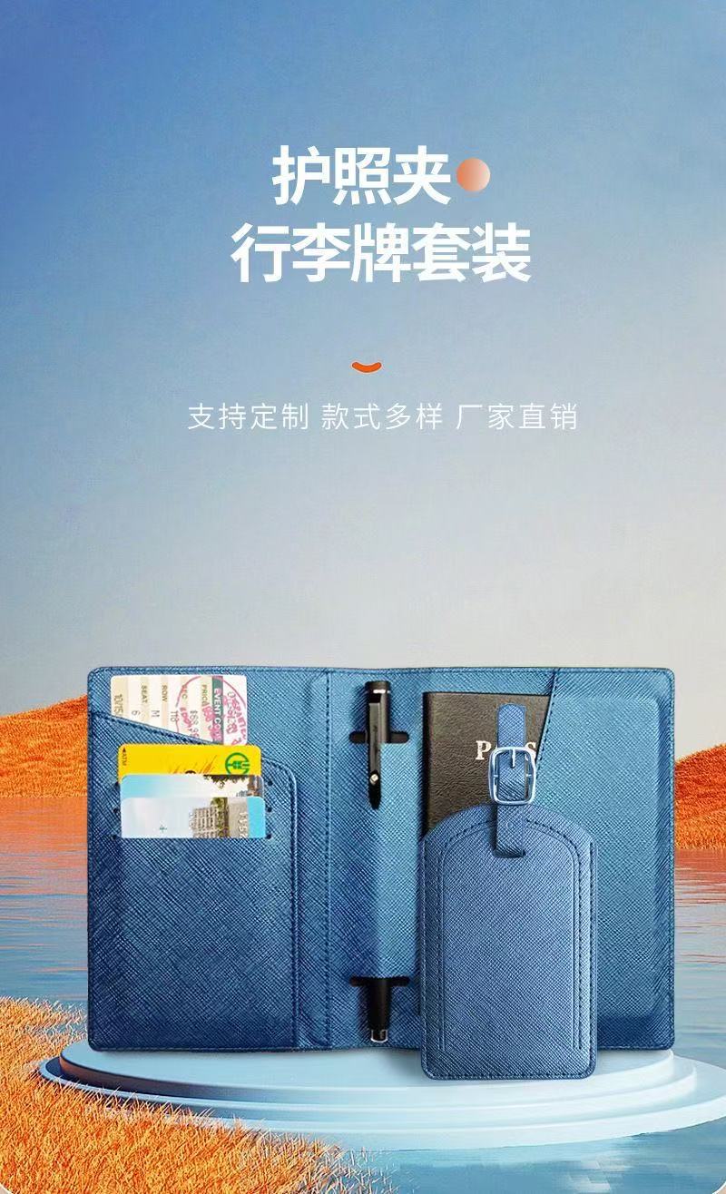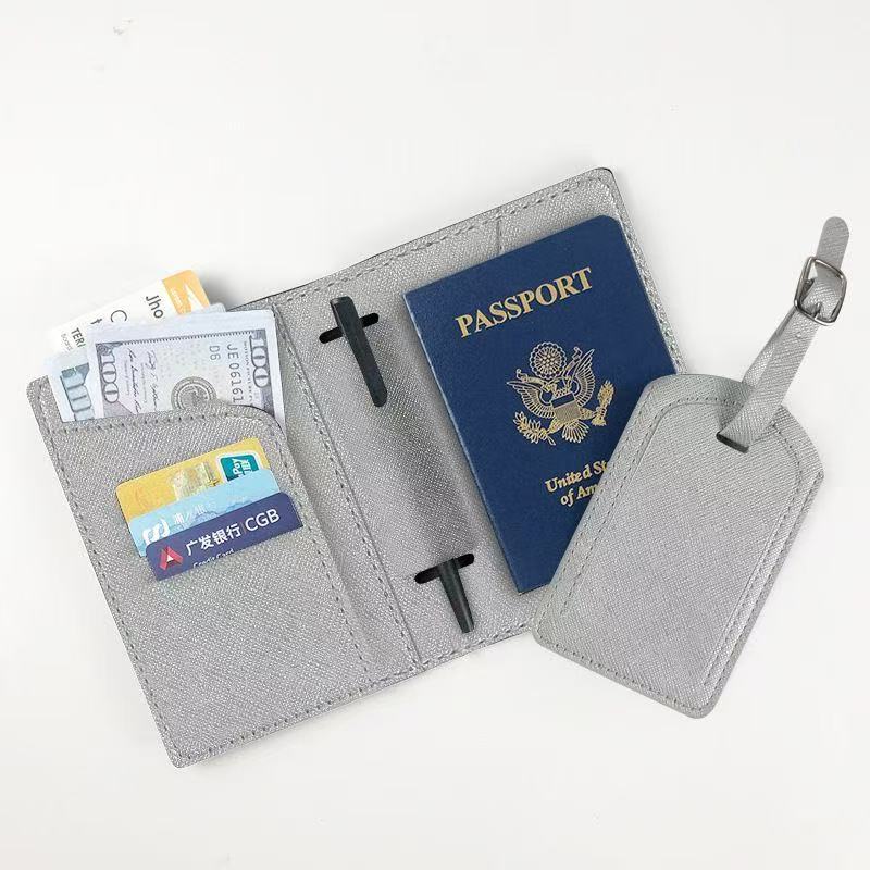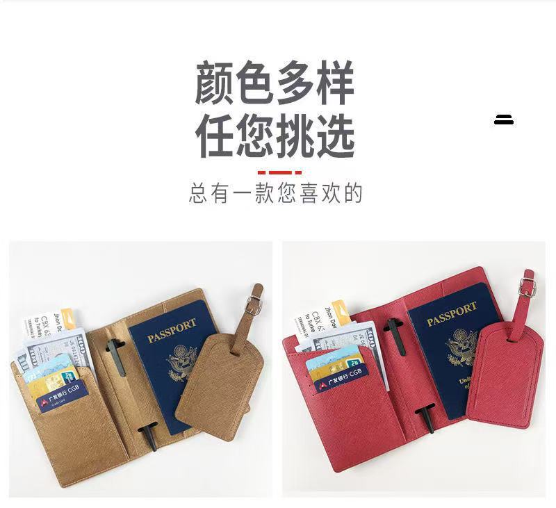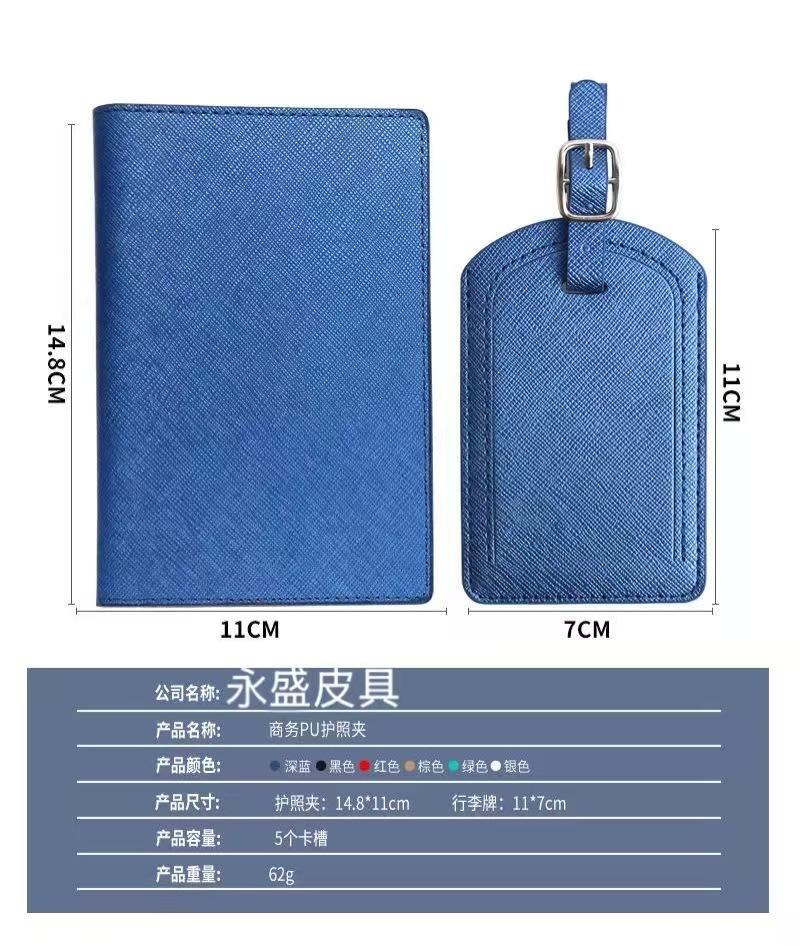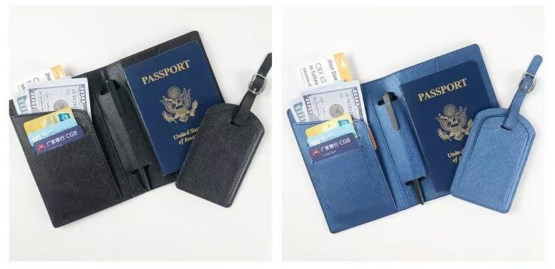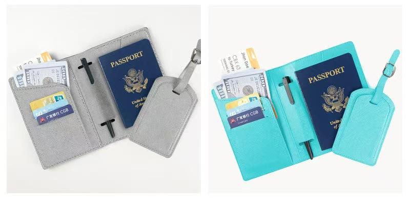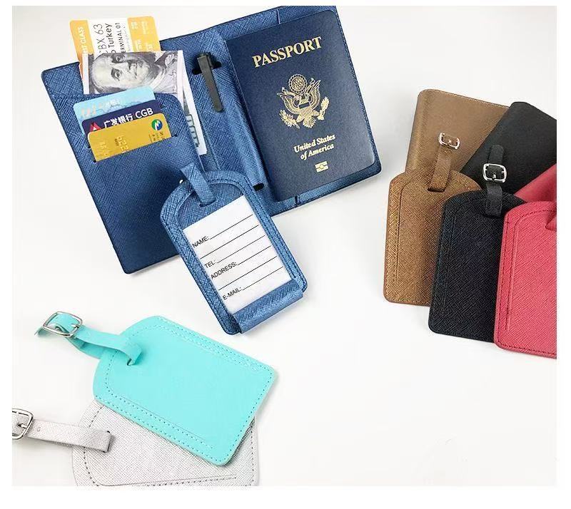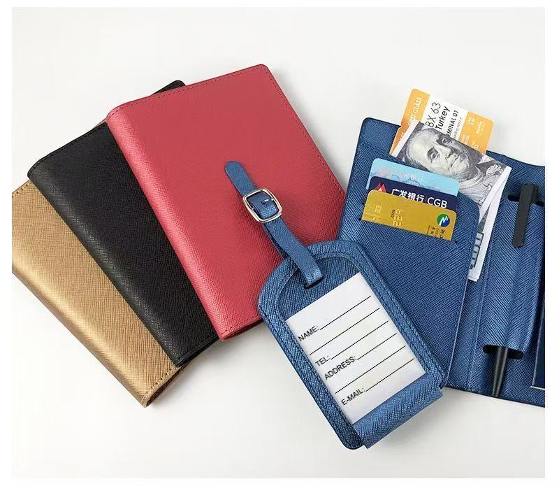 Nova Capa de Passaporte com Padrão Cruz de PU em Estoque Capa de Passaporte Multifuncional para Negócios com Inserção para Caneta Conjunto de Etiqueta de Bagagem