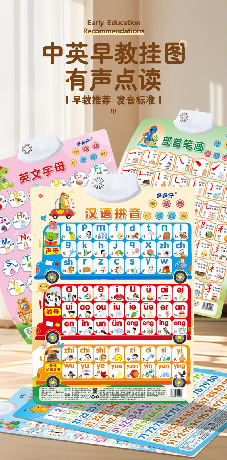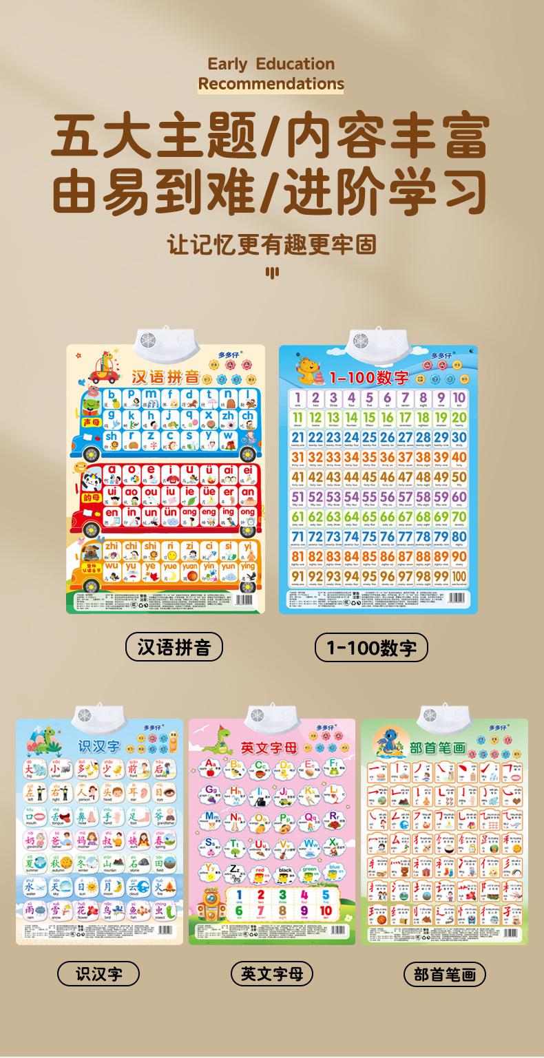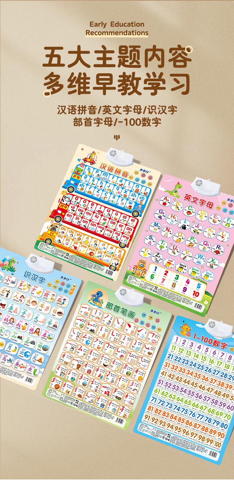 Papel Revestido Educação Infantil Iluminação Gráfico de Parede Pinyin Alfabético Numérico Aprendizagem Caracteres Chineses Leitura Apontando com o Dedo Gráfico de Parede Brinquedo