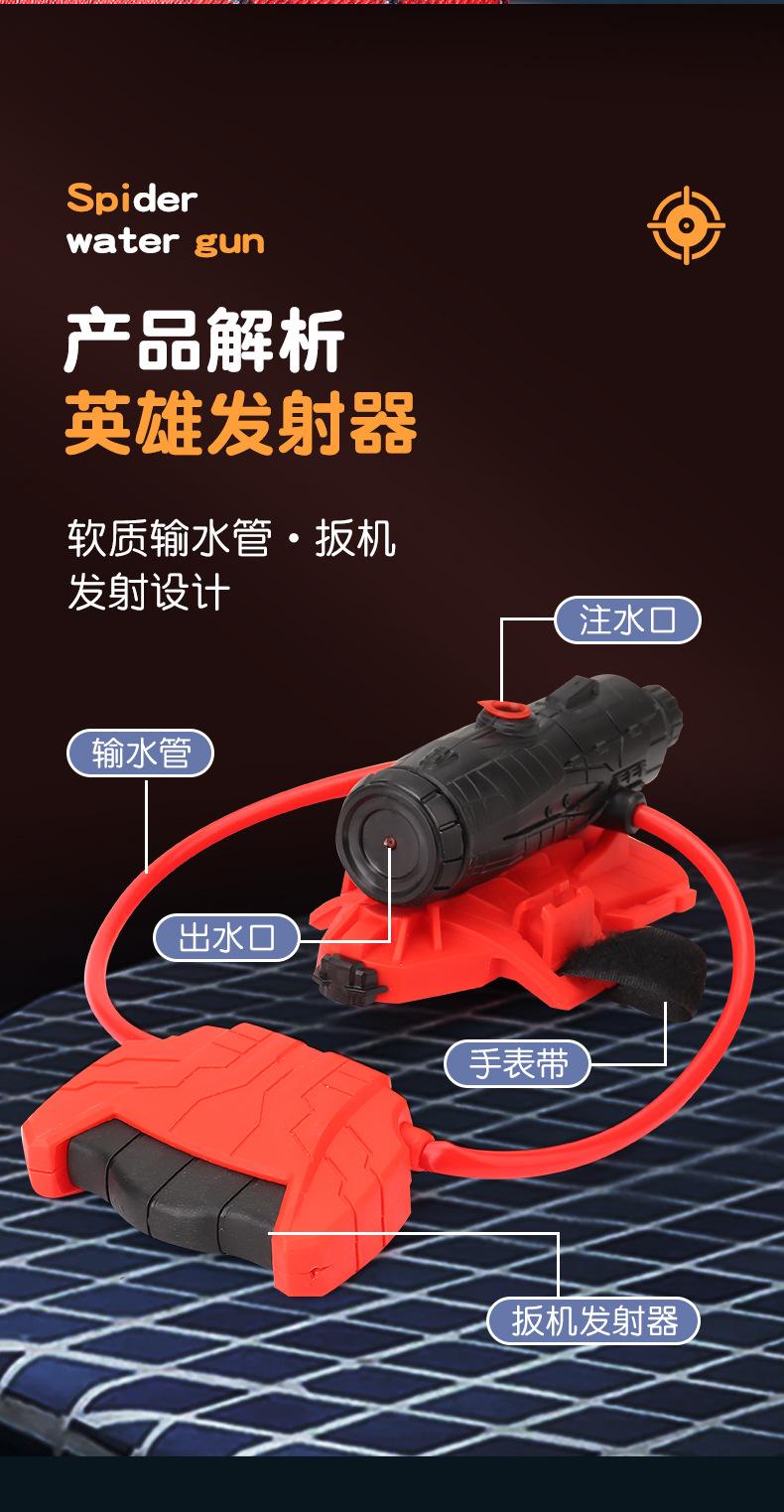 Pistola de Água Aranha Transfronteiriça Transmissor de Pulso Vestível Pressionamento Manual Brincadeira de Água Infantil Brinquedo Portátil com Tom de Agitação