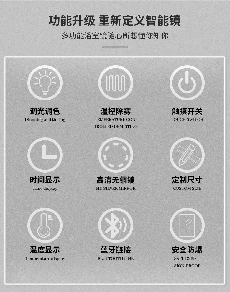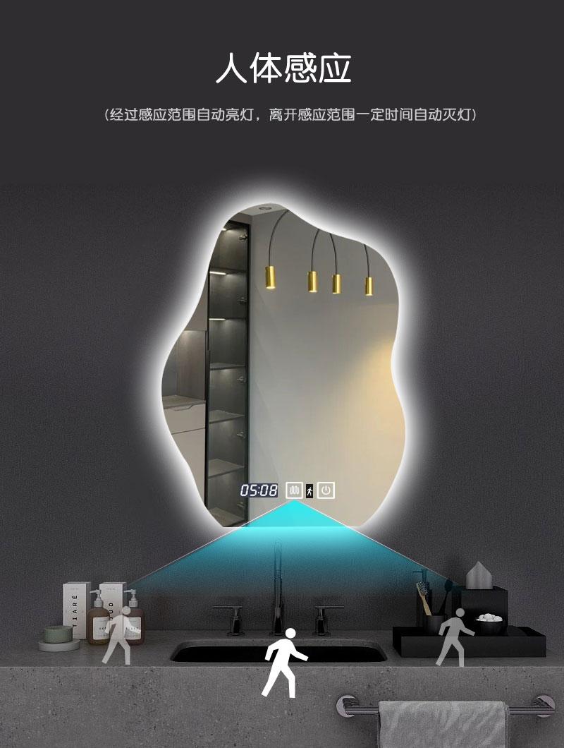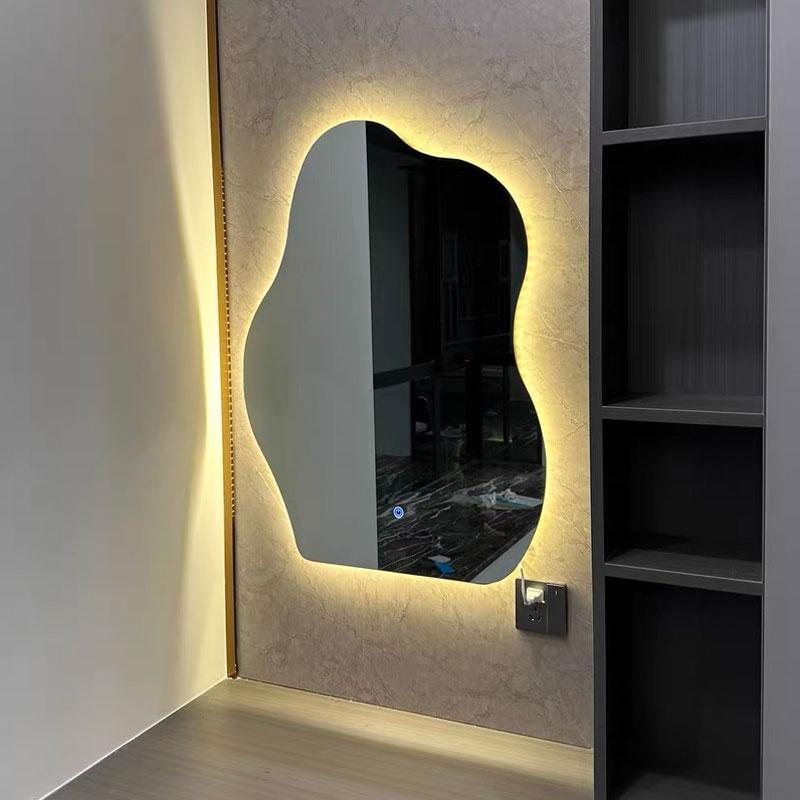 Espelho de Maquiagem de Alta Definição W7 Yunduo Espelho Assimétrico de Formato Especial Montado na Parede do Banheiro Lavatório Desembaçamento Espelho Inteligente