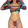 Biquíni dividido maiô feminino estampado almofada de peito removível