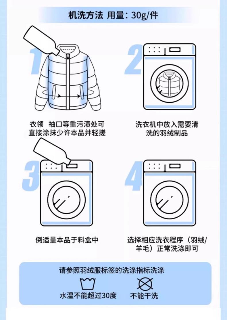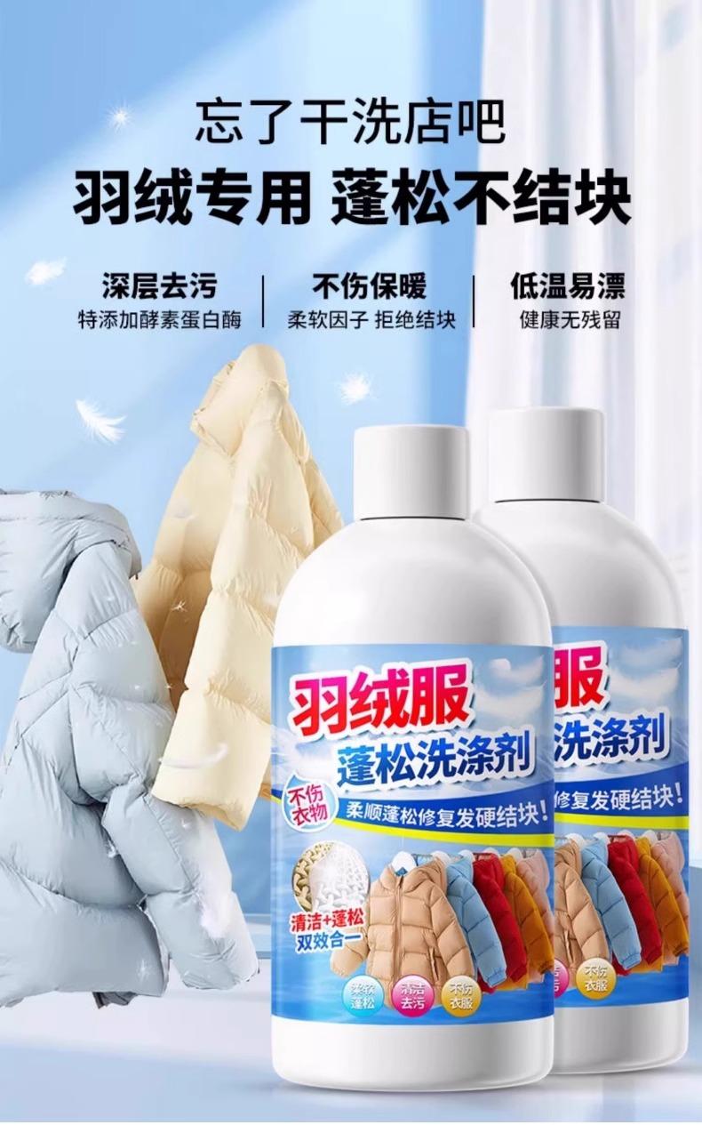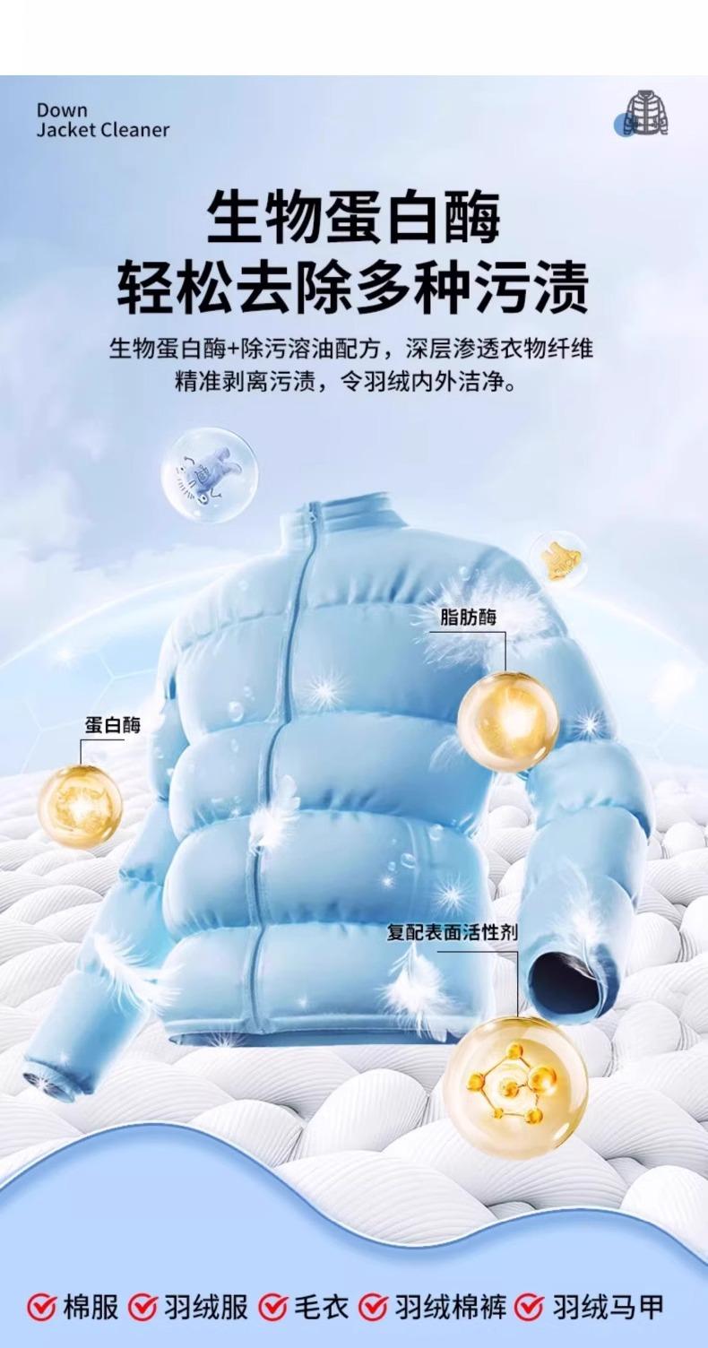 Casaco de penas detergente máquina especial de lavar para lavar descontaminação macio e fofo colcha doméstica algodão-acolchoado detergente para roupa atacado