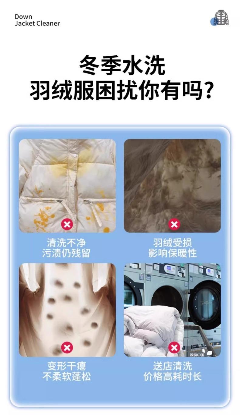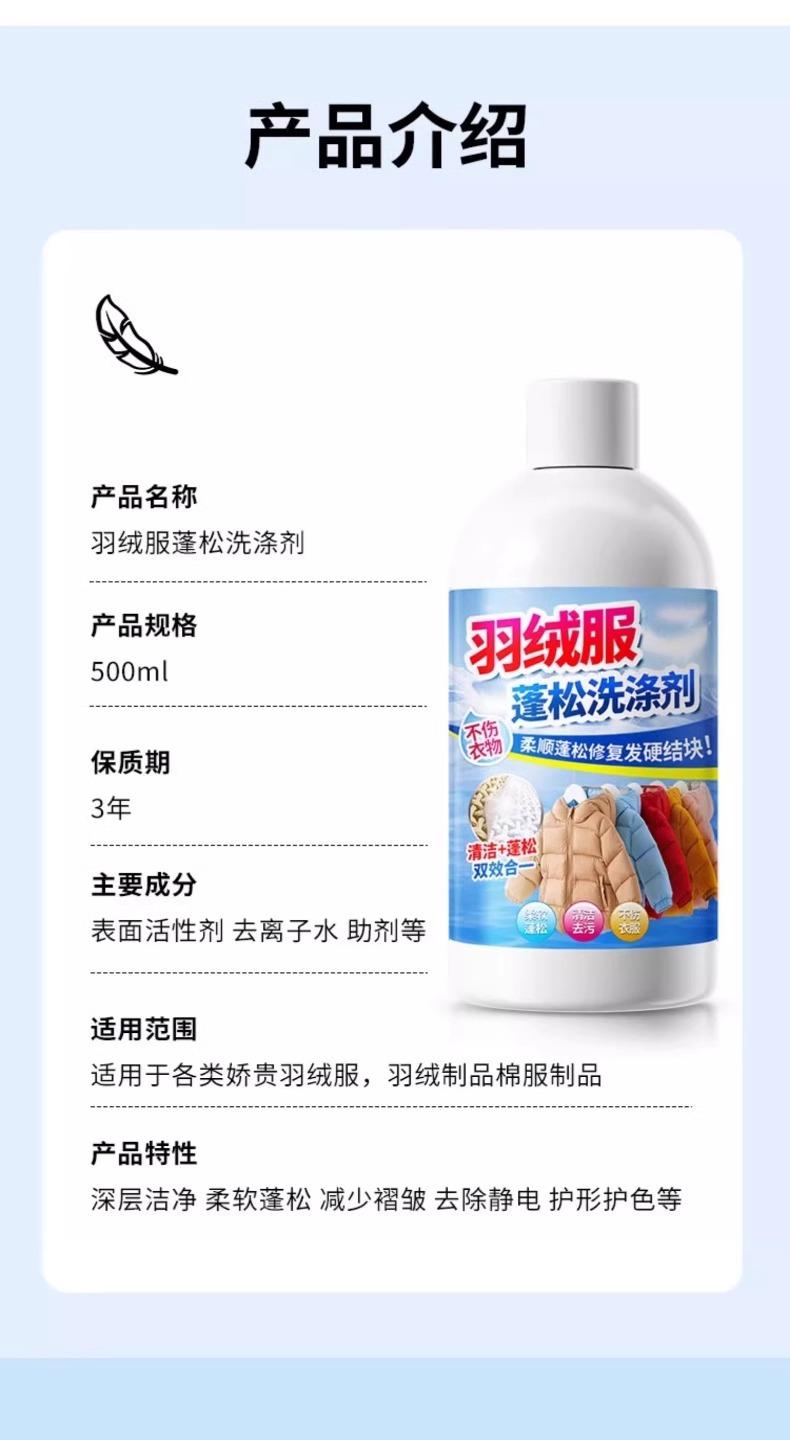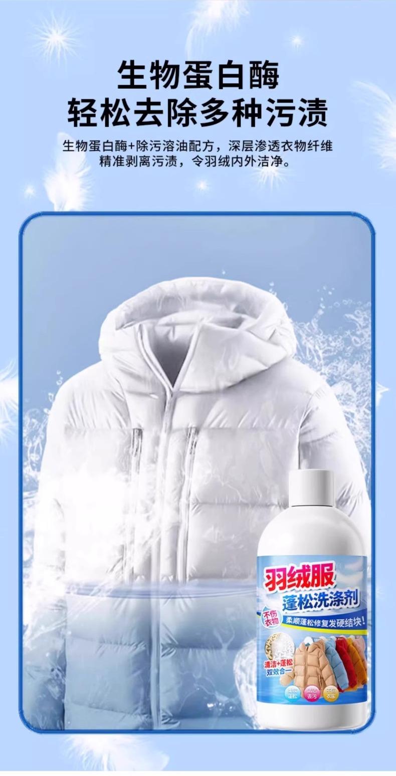 Casaco de penas detergente máquina especial de lavar para lavar descontaminação macio e fofo colcha doméstica algodão-acolchoado detergente para roupa atacado