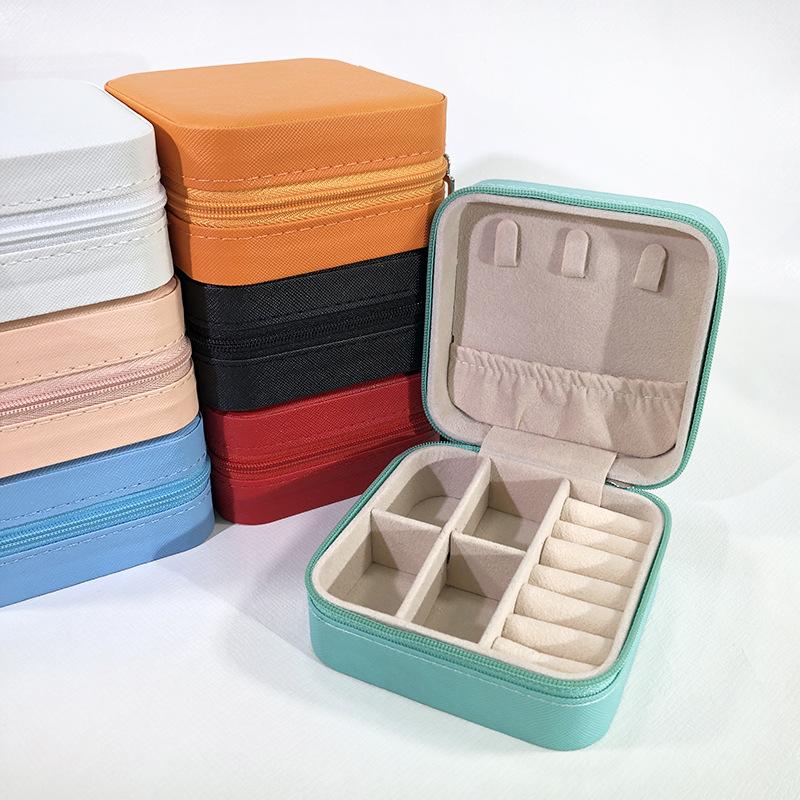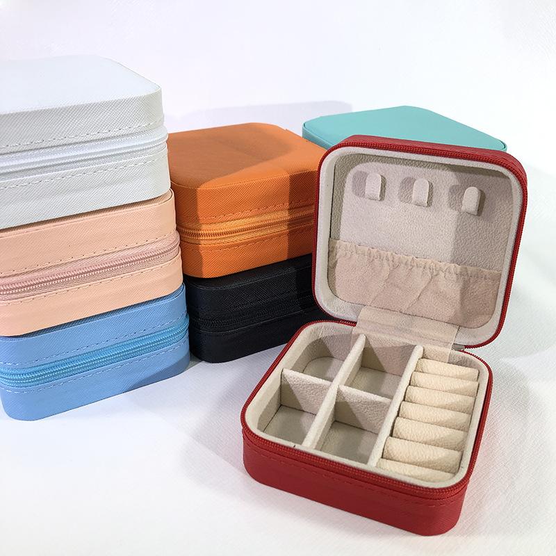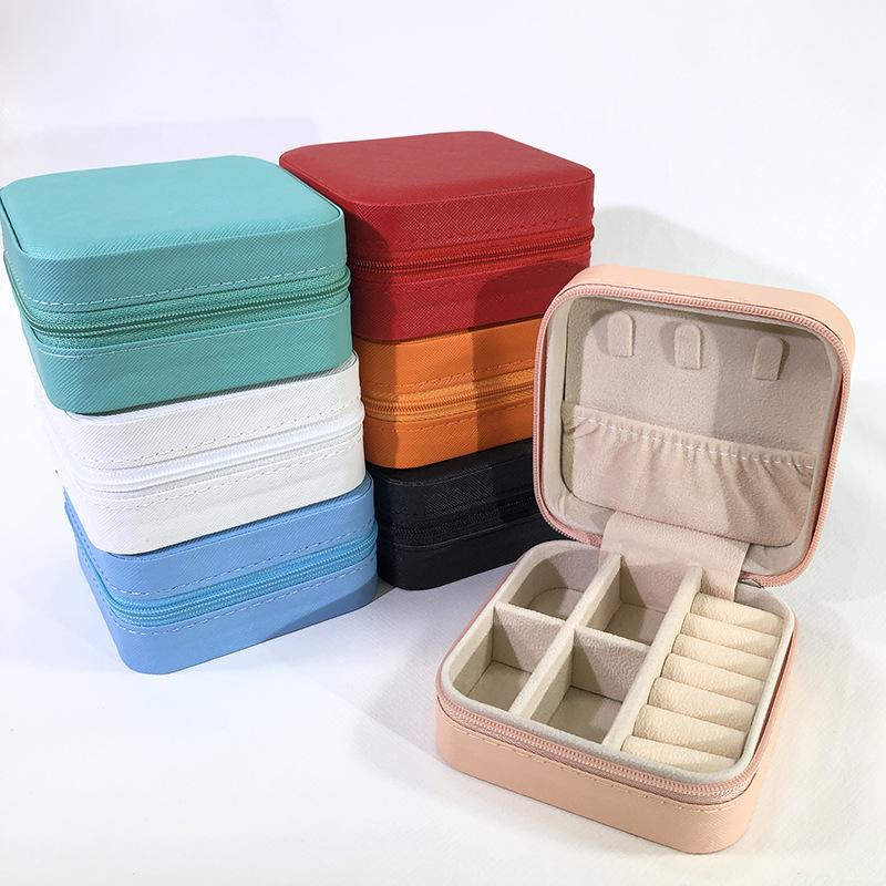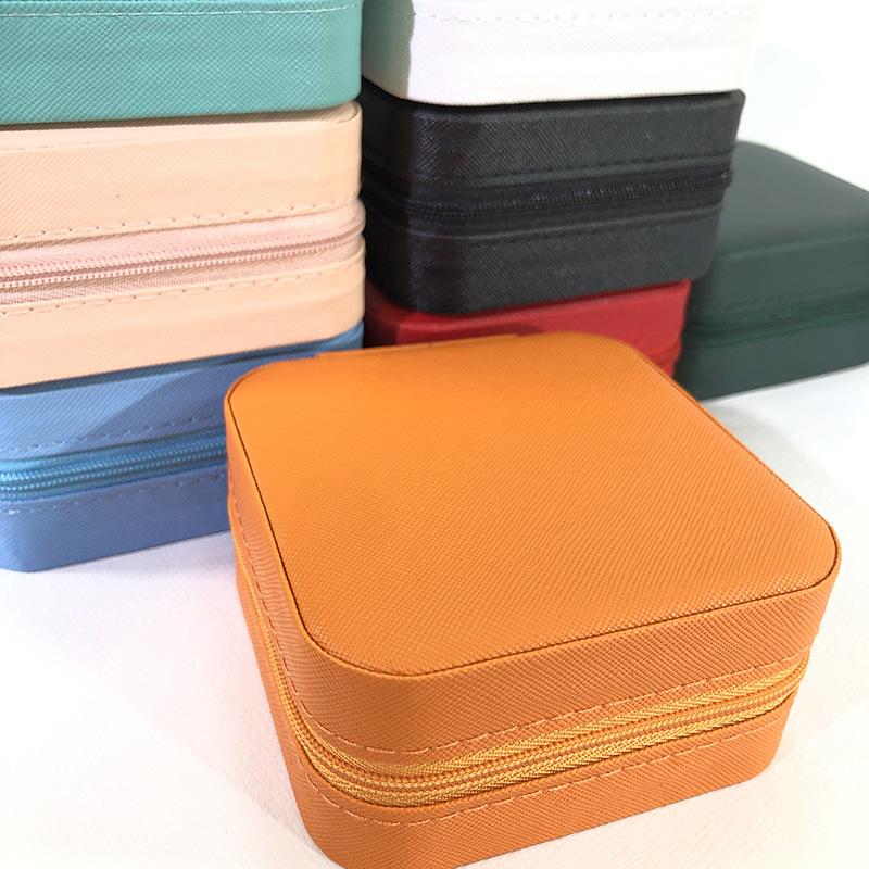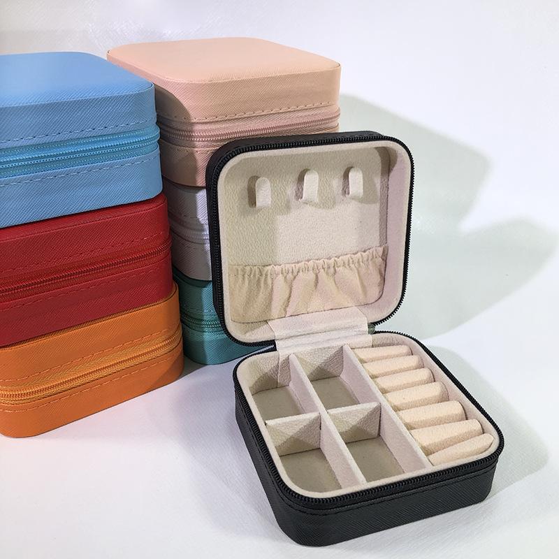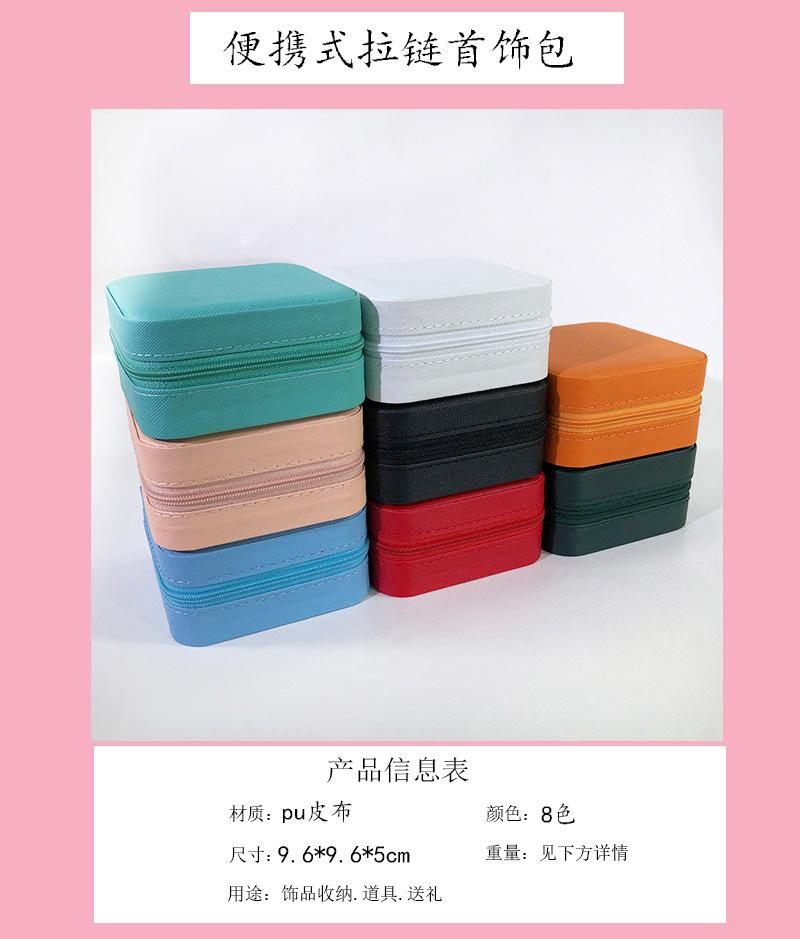 Caixa de joias portátil cor macaron bolsa com zíper caixa de armazenamento de joias simples requintada brincos de pino colar anel caixa de joias