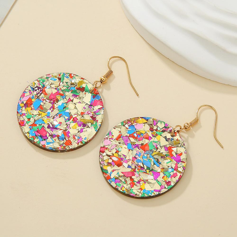 Compre Europa e Estados Unidos transfronteiriços cor popular geométrico brincos redondos feminino Coringa pingente acrílico liga gancho de orelha joias atacado no atacado no Joom.pro