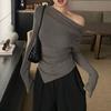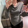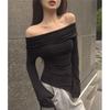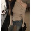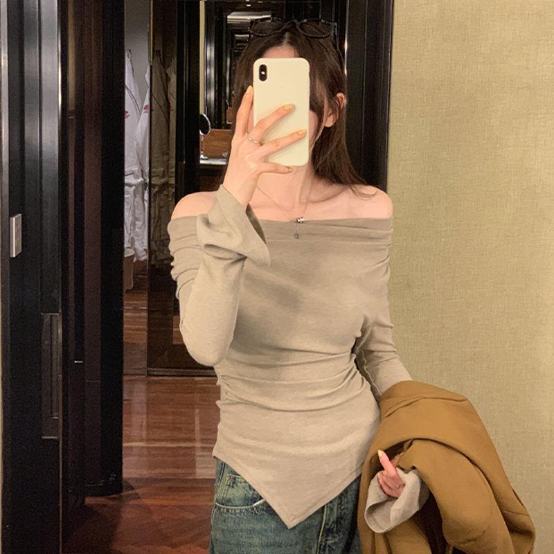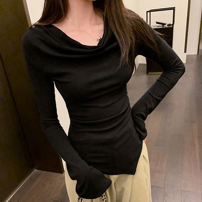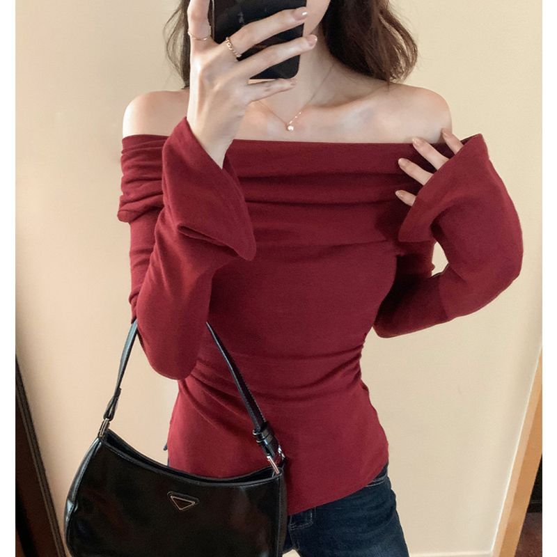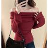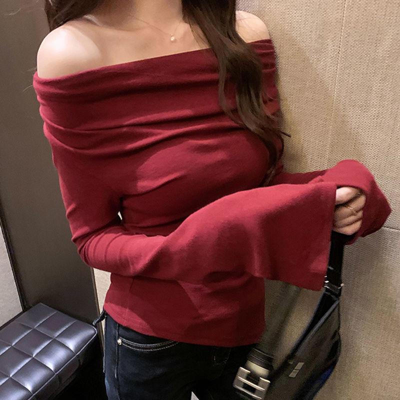 Compre Camiseta Feminina de Manga Comprida com Ombro Vermelho Outono Temperamento de Alta Qualidade Ajuste Slim Emagrecimento Camiseta Básica Interna Top Puro no atacado no Joom.pro