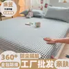 Lençol de Algodão Lavado Xadrez Ajustável, Peça Única Lisa Simples, Protetor de Colchão Simmons, Jogo de Cama Liso de Três Peças