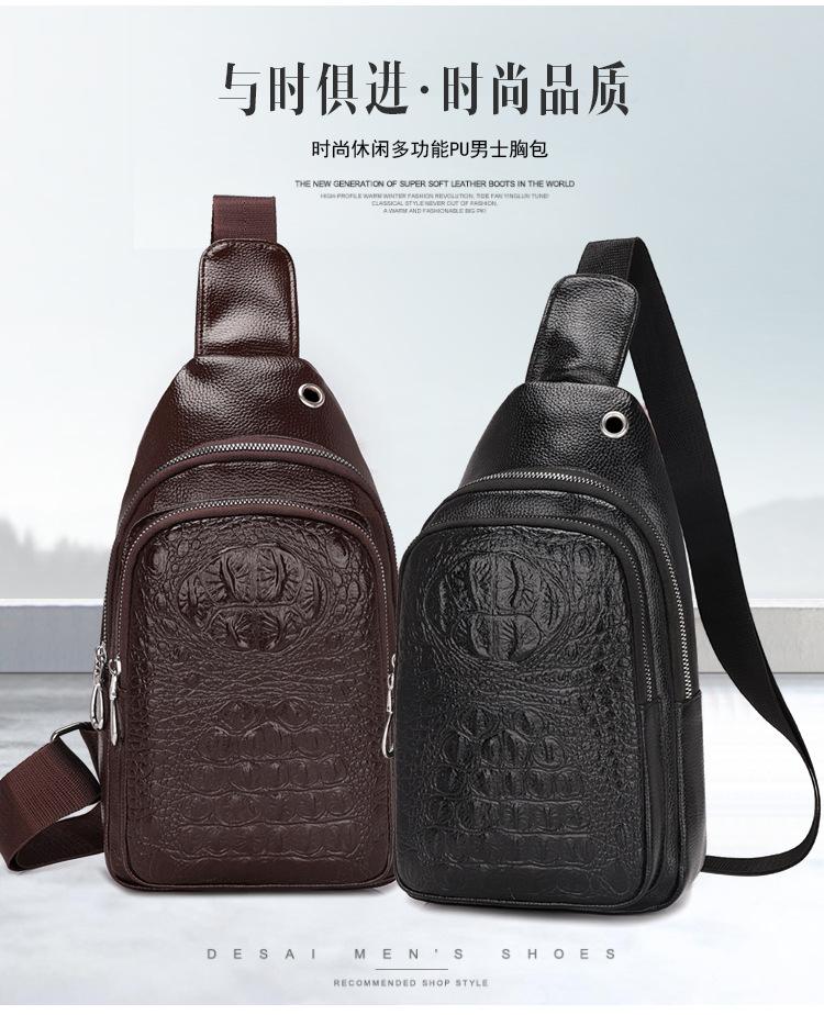 Bolsa de Peito da Moda Masculina Nova Bolsa de Peito Transversal de Grande Capacidade Padrão Crocodilo Bolsa de Ombro Business Casual para Homens