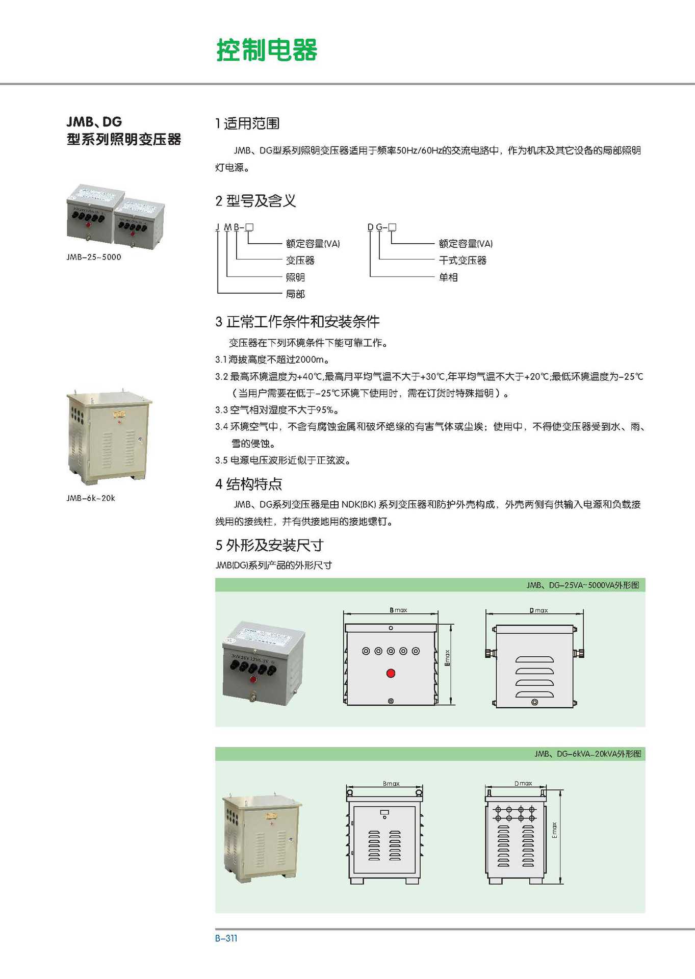 Os transformadores de iluminação das séries JMB e DG são adequados para uso em circuitos CA de 50 Hz/60 Hz como fontes de energia de iluminação local para máquinas-ferramentas e outros equipamentos.