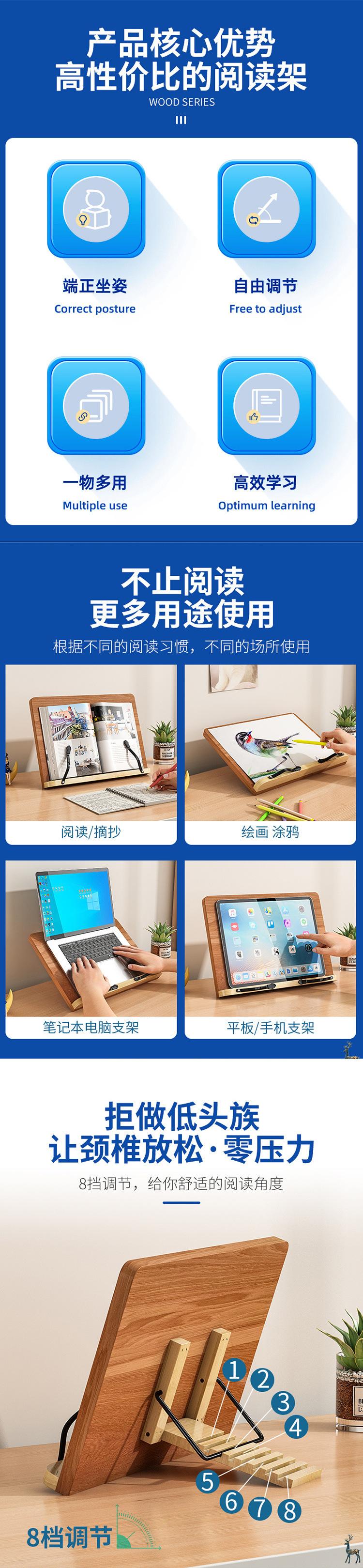 Suporte de Leitura Estante Estante de Leitura de Madeira para Adultos Artefato de Leitura Suporte para Livros para Crianças do Ensino Fundamental Porta-Livros Porta-Cópias