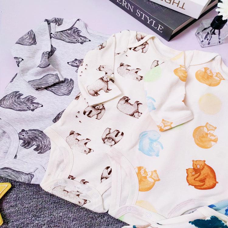 Roupa de Peido Envoltório de Algodão Puro Classe A para Bebê Macacão de Bebê de Manga Comprida com Animais Fofos para Recém-Nascido Novo Estilo Bebê Outono Ins