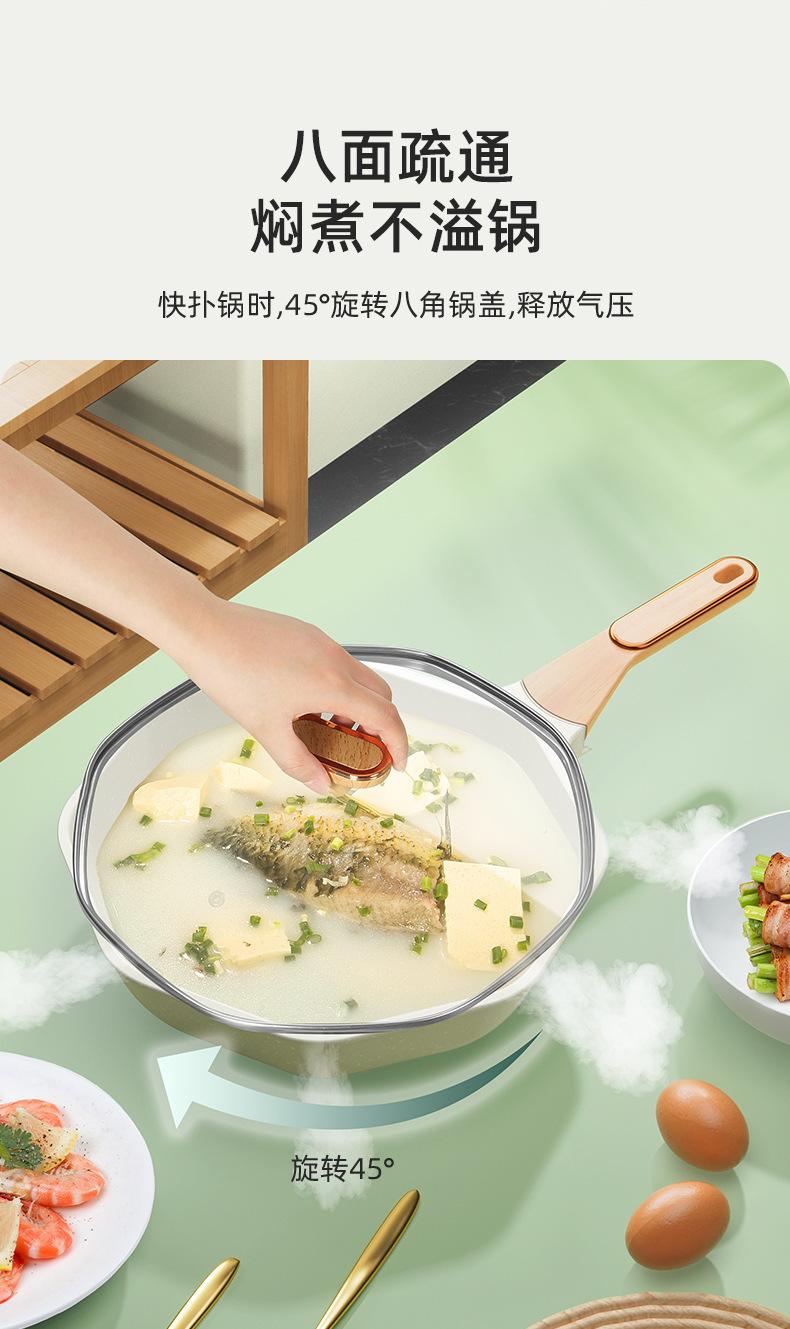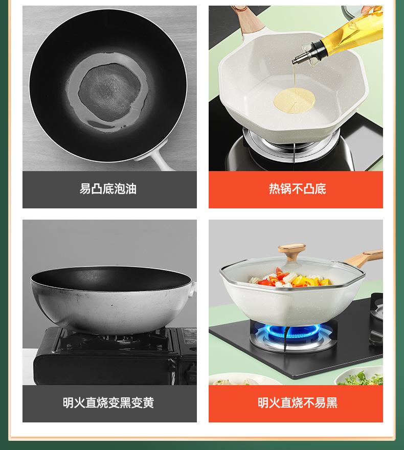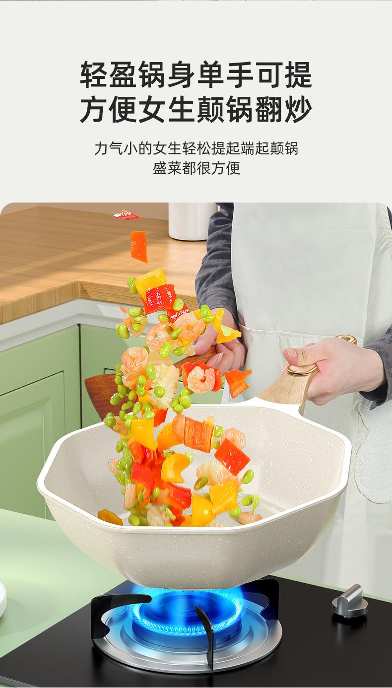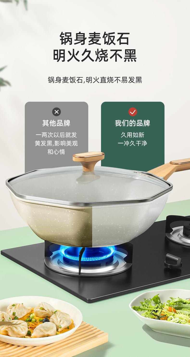 Panela Antiaderente de Pedra Médica Wok Doméstico Wok Octogonal Frigideira Antiaderente Fogão de Indução Doméstico Fogão a Gás