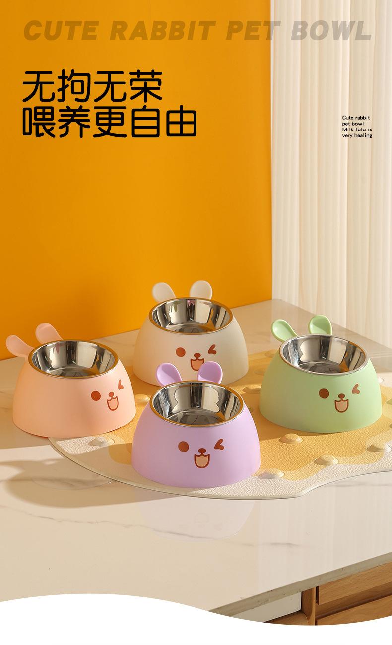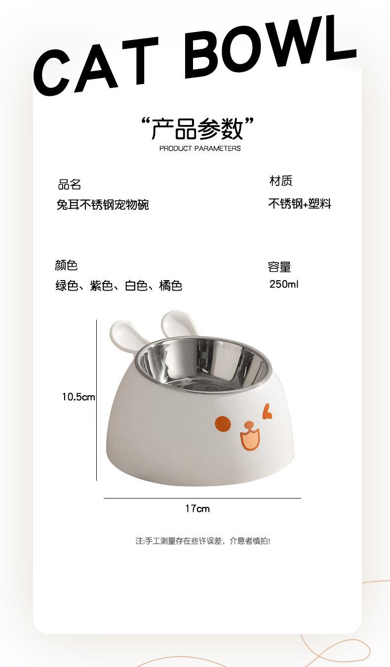 Tigela Orelha de Coelho para Pet, Tigela de Arroz com Proteção de Pescoço para Cão, Tigela para Beber Aço Inoxidável para Gato, Comida para Cão, Suprimentos Tigela de Comida para Gato # #