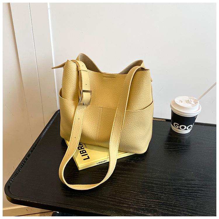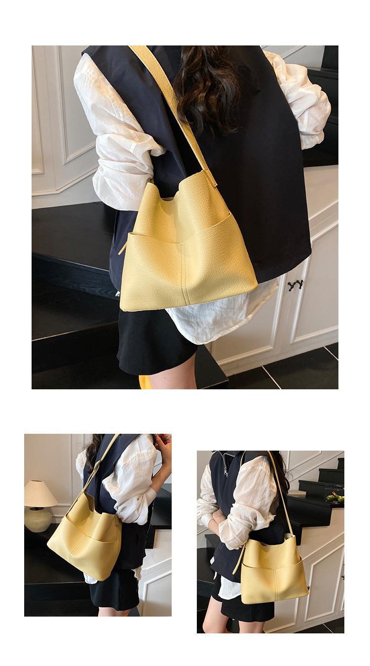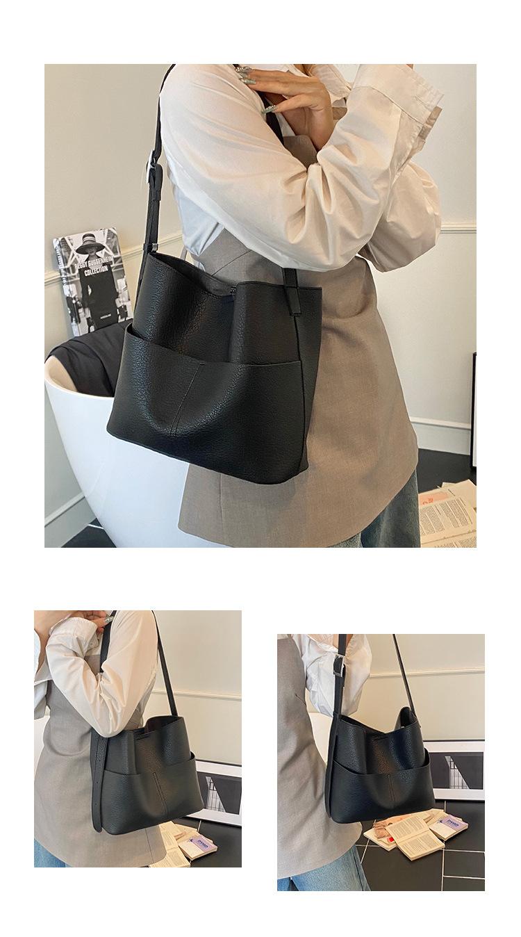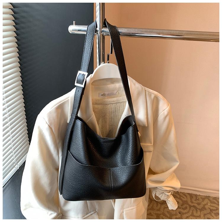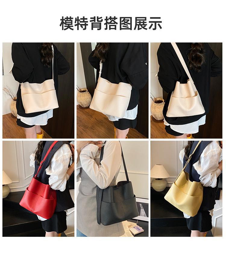 Bolsa de Grande Capacidade para Mulheres 2025 Novo Estilo Simples e Versátil Bolsa Transversal de Ombro Casual Trabalho Commuter Bolsa Balde Tote