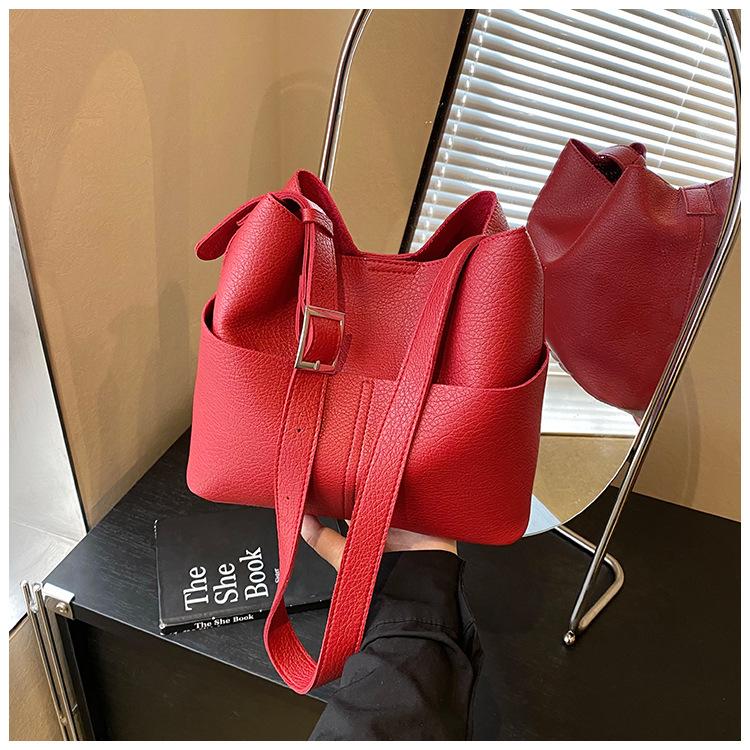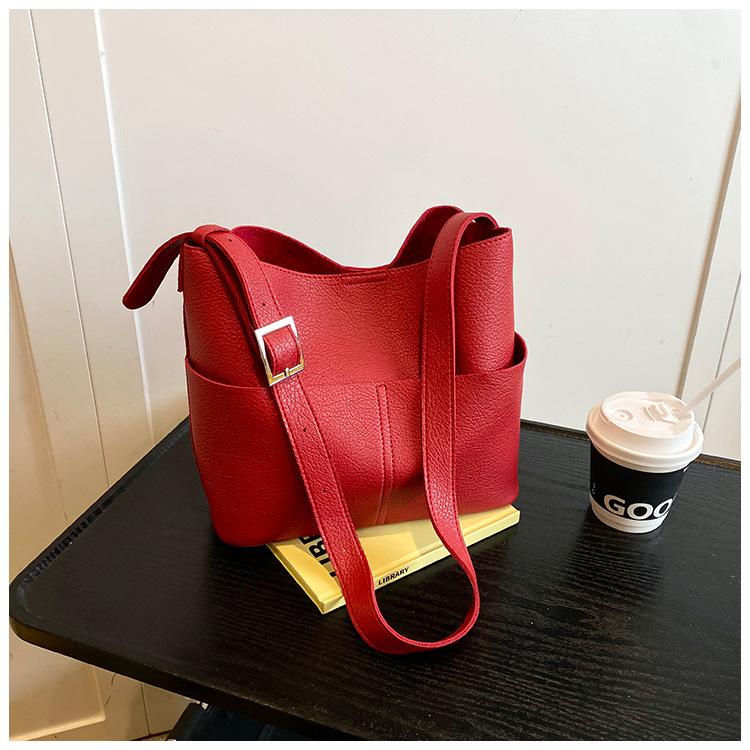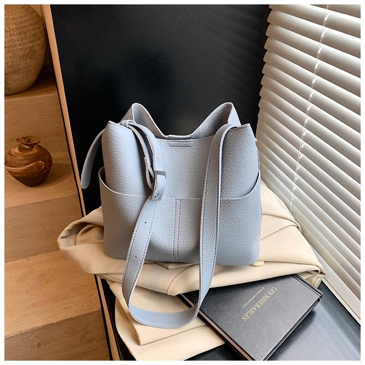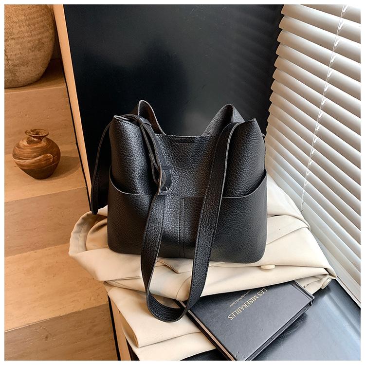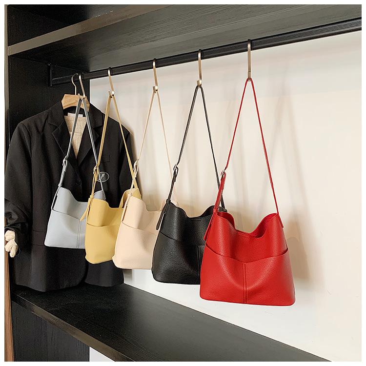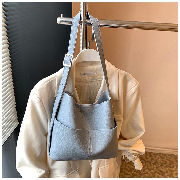 Bolsa de Grande Capacidade para Mulheres 2025 Novo Estilo Simples e Versátil Bolsa Transversal de Ombro Casual Trabalho Commuter Bolsa Balde Tote
