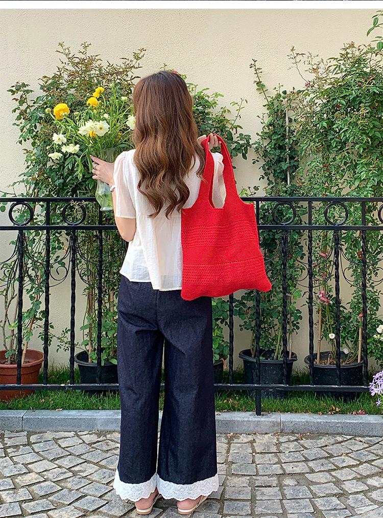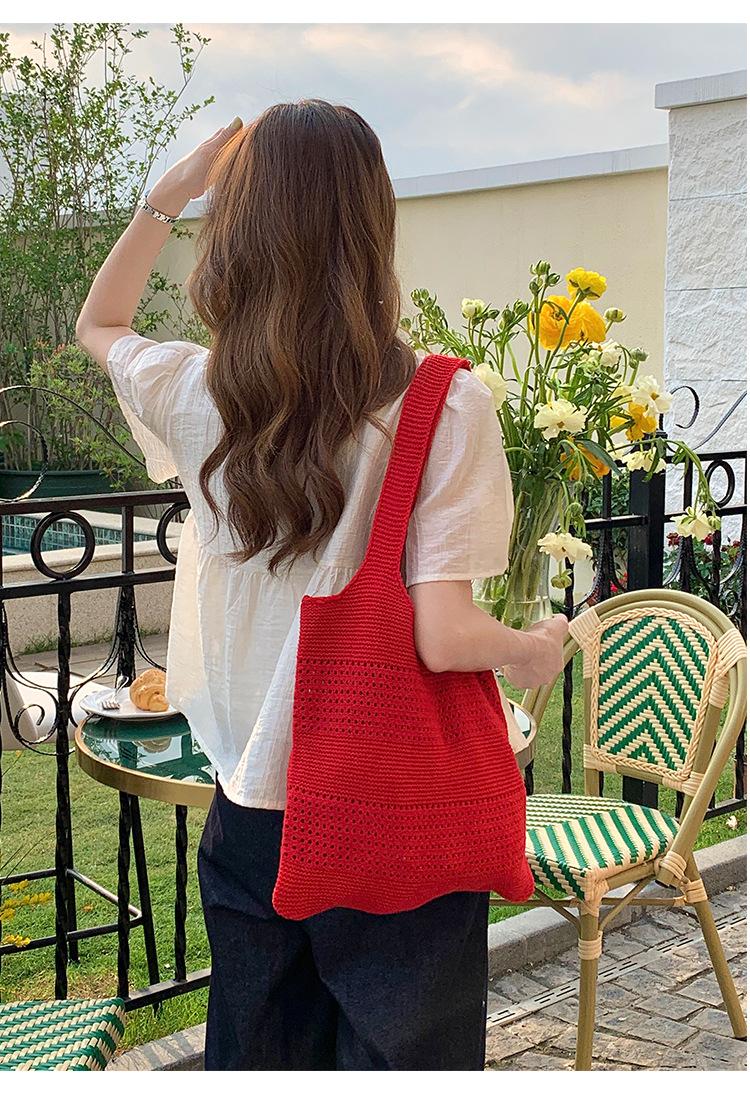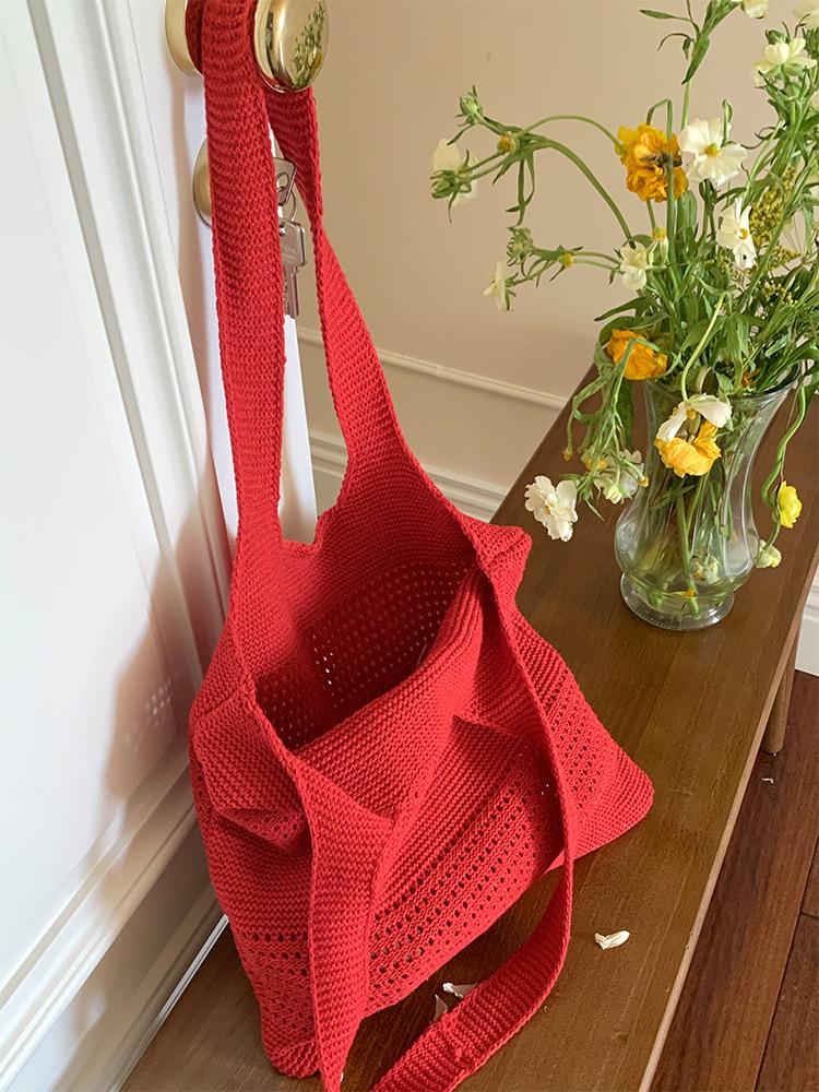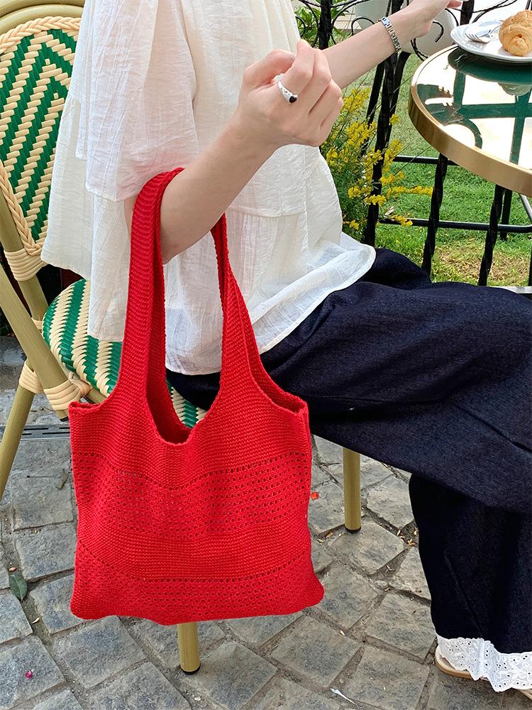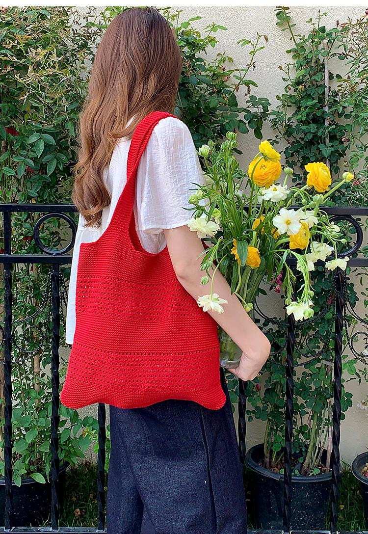 Nova Bolsa Vermelha Grande Capacidade Bolsa de Praia de Verão Estilo Férias à Beira-Mar Palha Tecida Bolsa de Trabalho Estilo Preguiçoso Bolsa Tecida Moderna