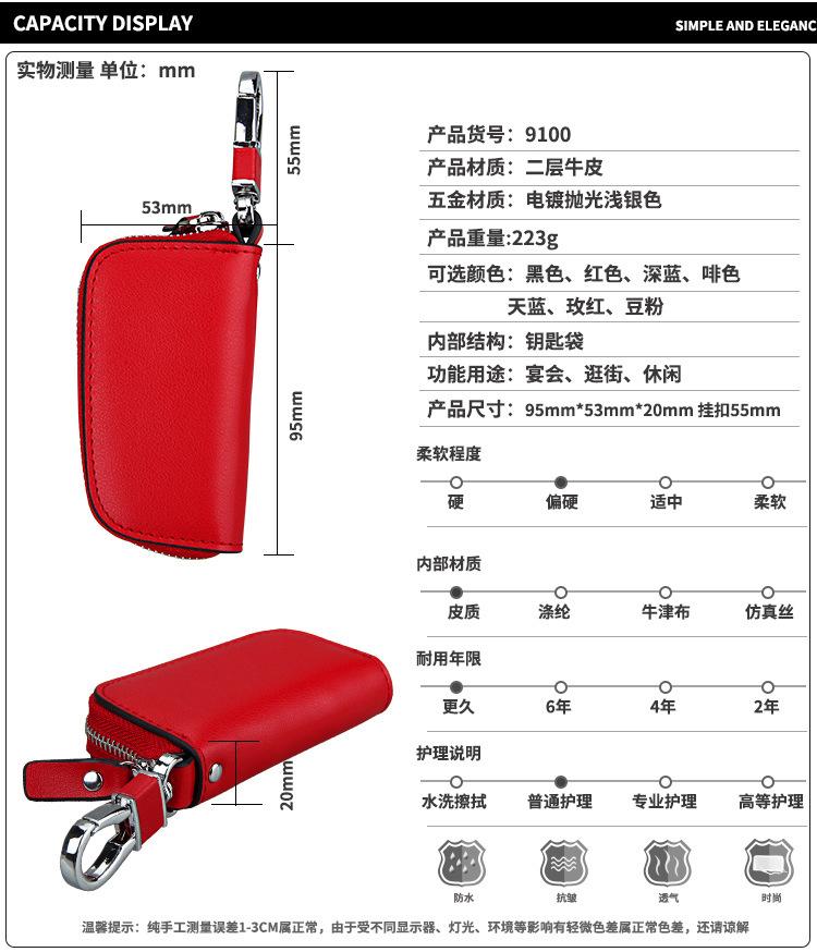 Bolsa para chaves de couro genuíno masculina, bolsa multifuncional para chaves de carro com zíper, bolsa para chaves de carro de negócios feminina, fabricante personalizada¥11,88