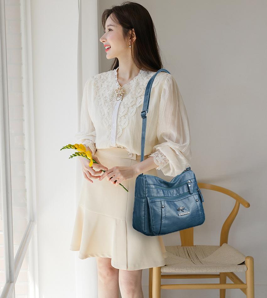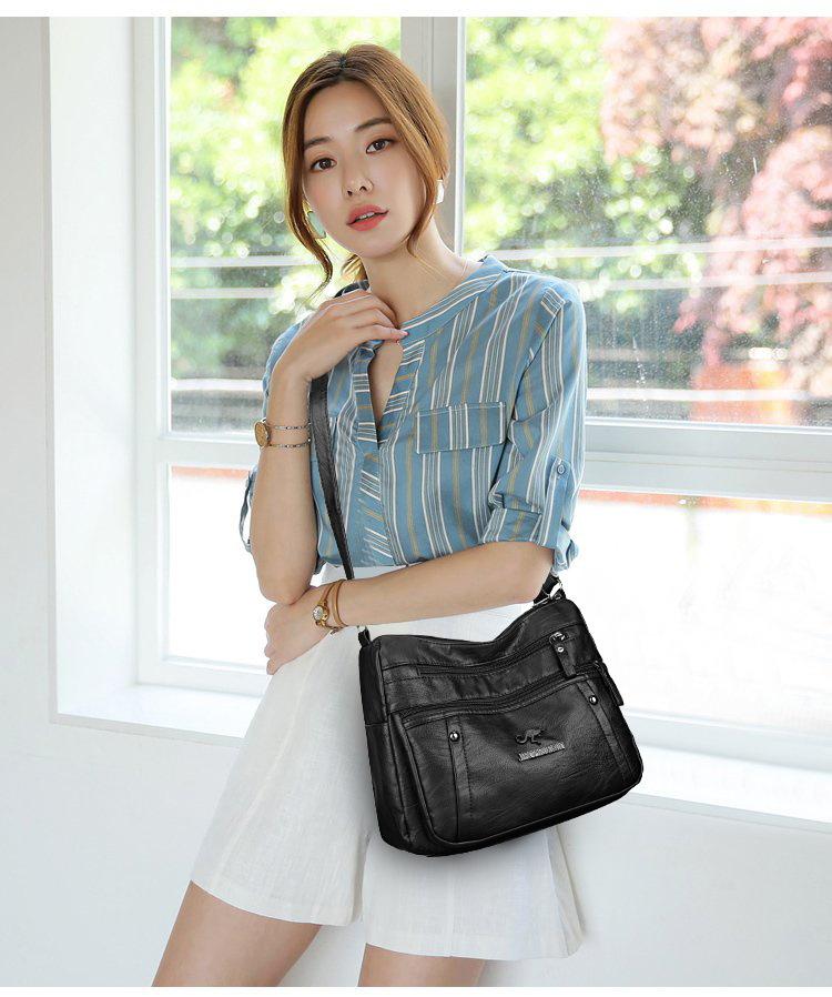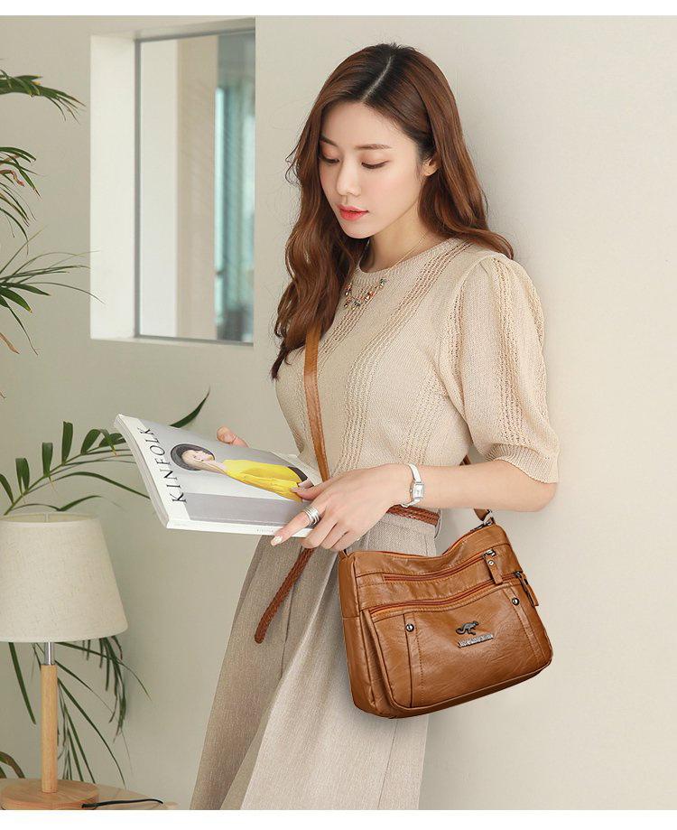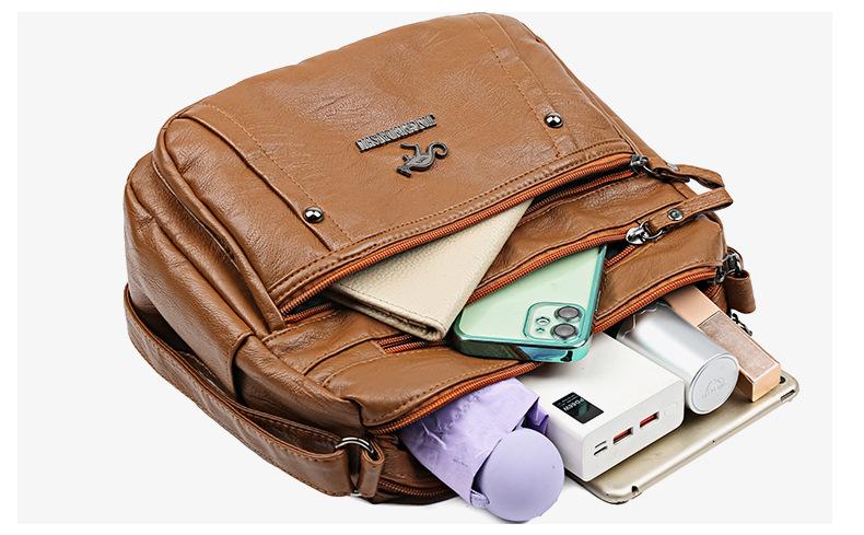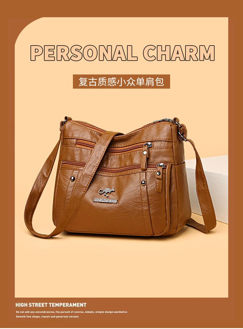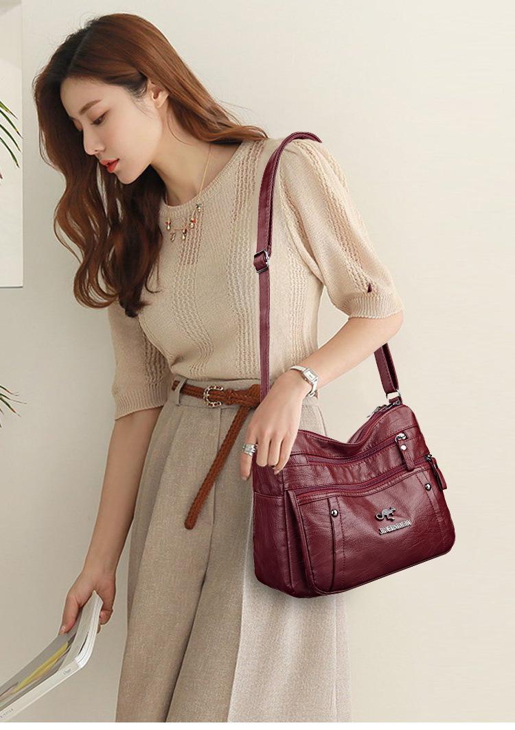 Bolsas para Mulheres Nova Bolsa para Mãe de Meia-Idade Grande Capacidade Moda Simples Versátil Pu Couro Macio Simples Casual Bolsa de Ombro