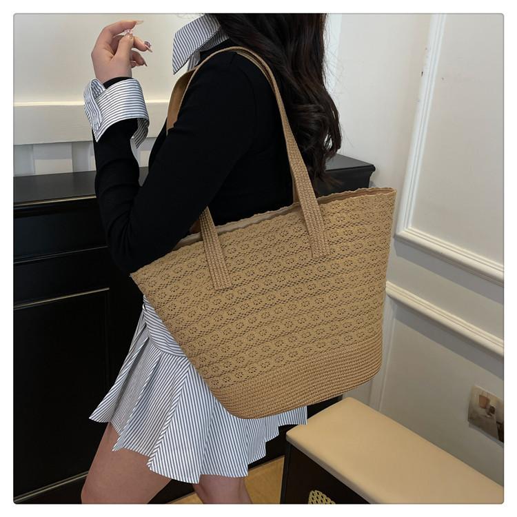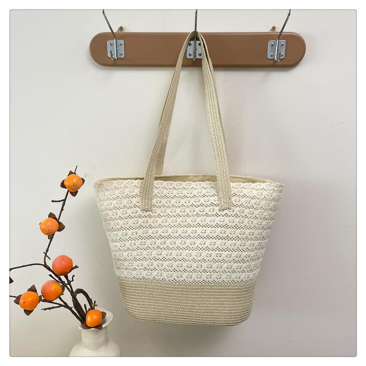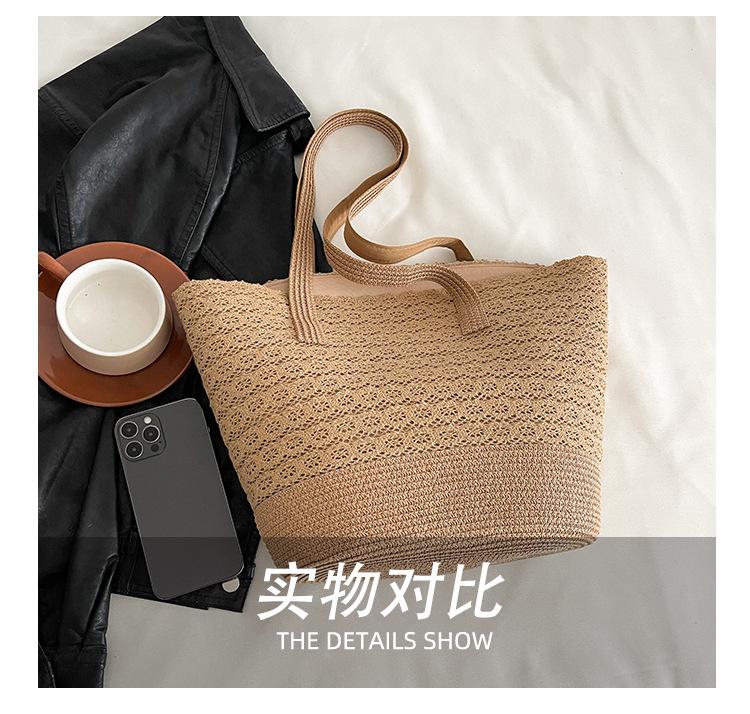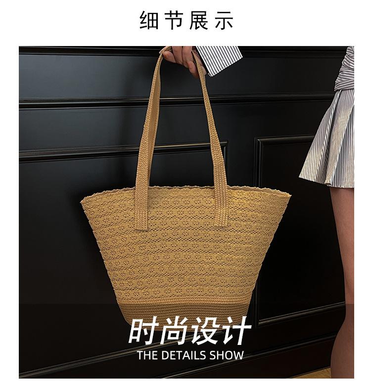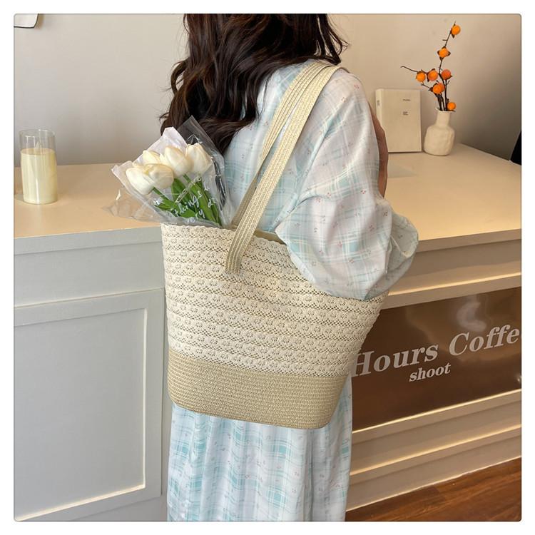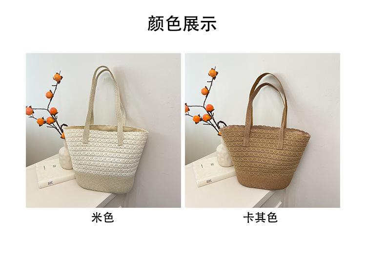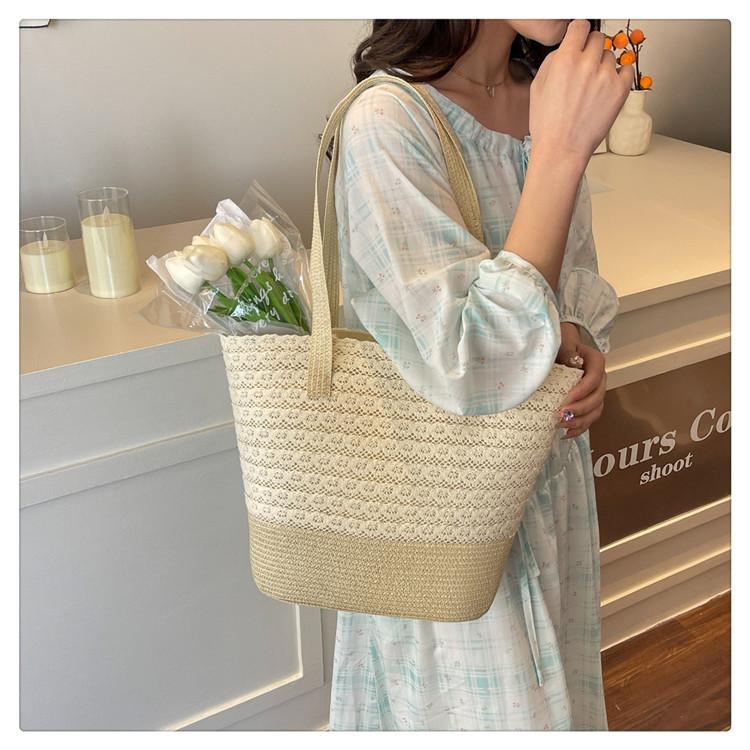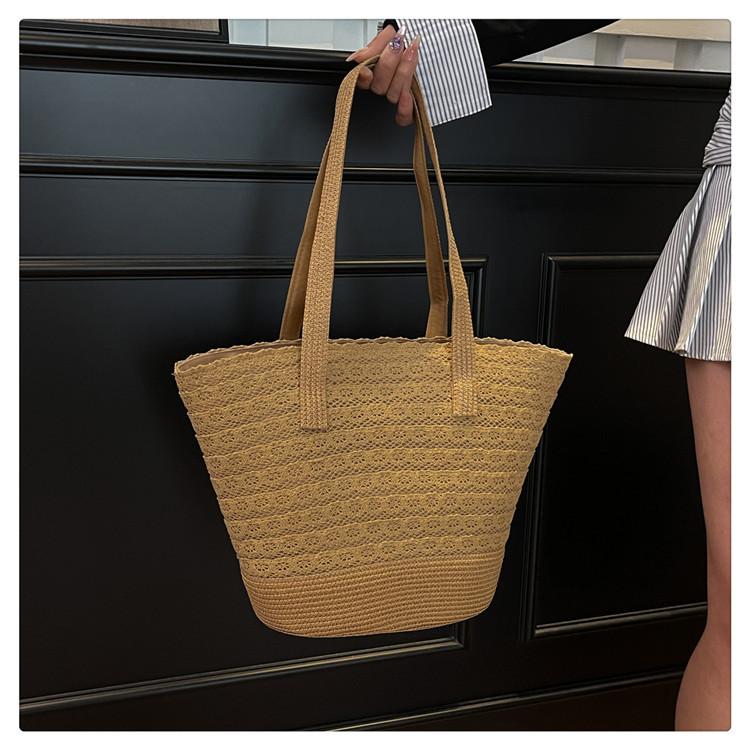 Bolsa de Palha de Renda Tecida para Mulheres 2025 Bolsa de Praia para Férias à Beira-Mar de Grande Capacidade Bolsa de Ombro Tecida de Palha Bolsa Balde Diagonal