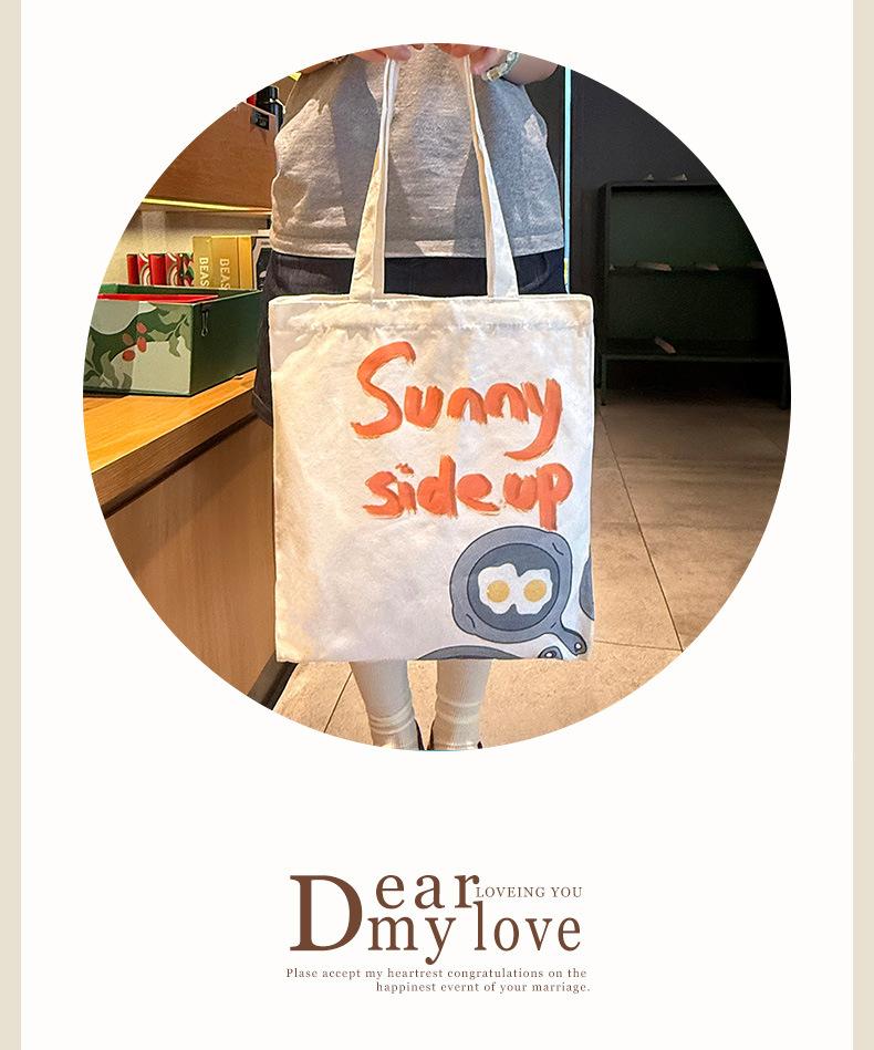 Atacado do Fabricante Bolsa de Lona Simples de Desenho Animado 2025 Nova Bolsa de Ombro de Grande Capacidade Moda para Passeios Sacola de Compras Ecológica